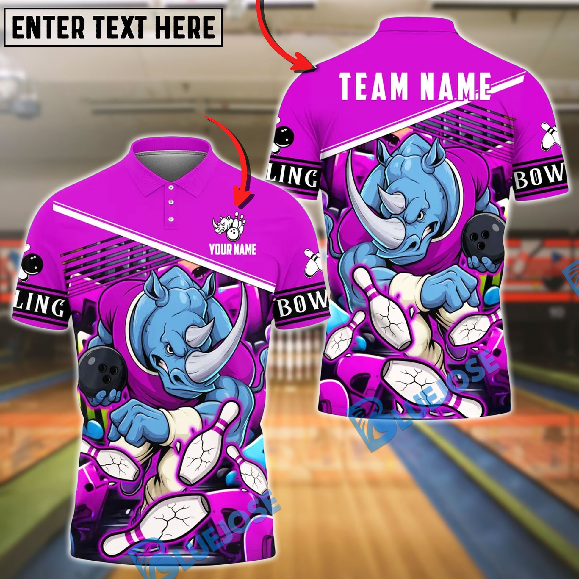 BlueJose Bowling And Pins Rhino Crush Strike Customized Name, Team Name 3D Shirt (4 Colors)