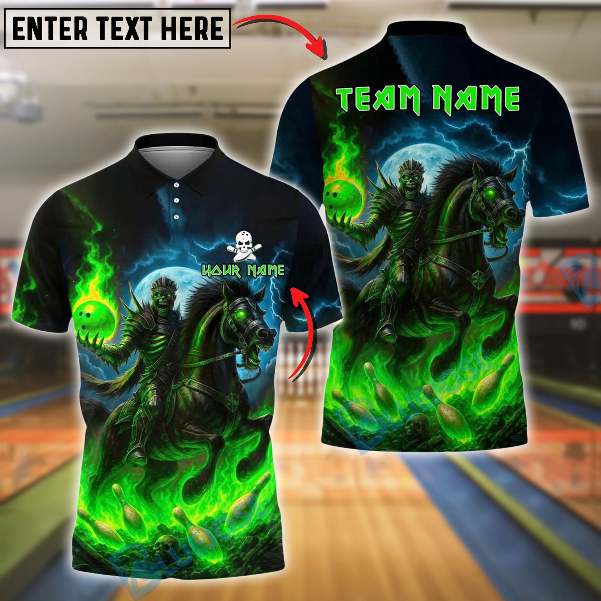 BlueJose Bowling And Pins Rider Dark Horse Blue Flame Customized Name, Team Name 3D Shirt (4 Colors)