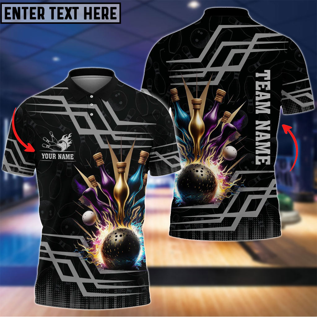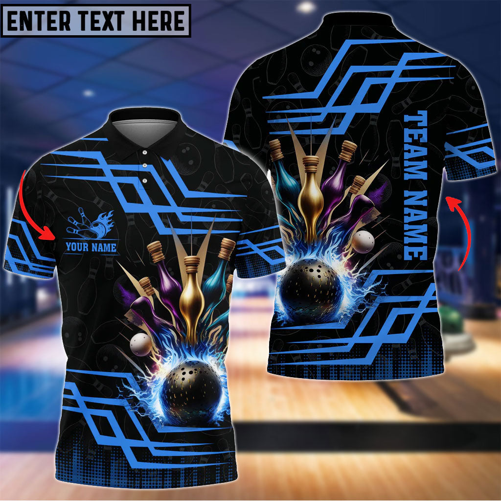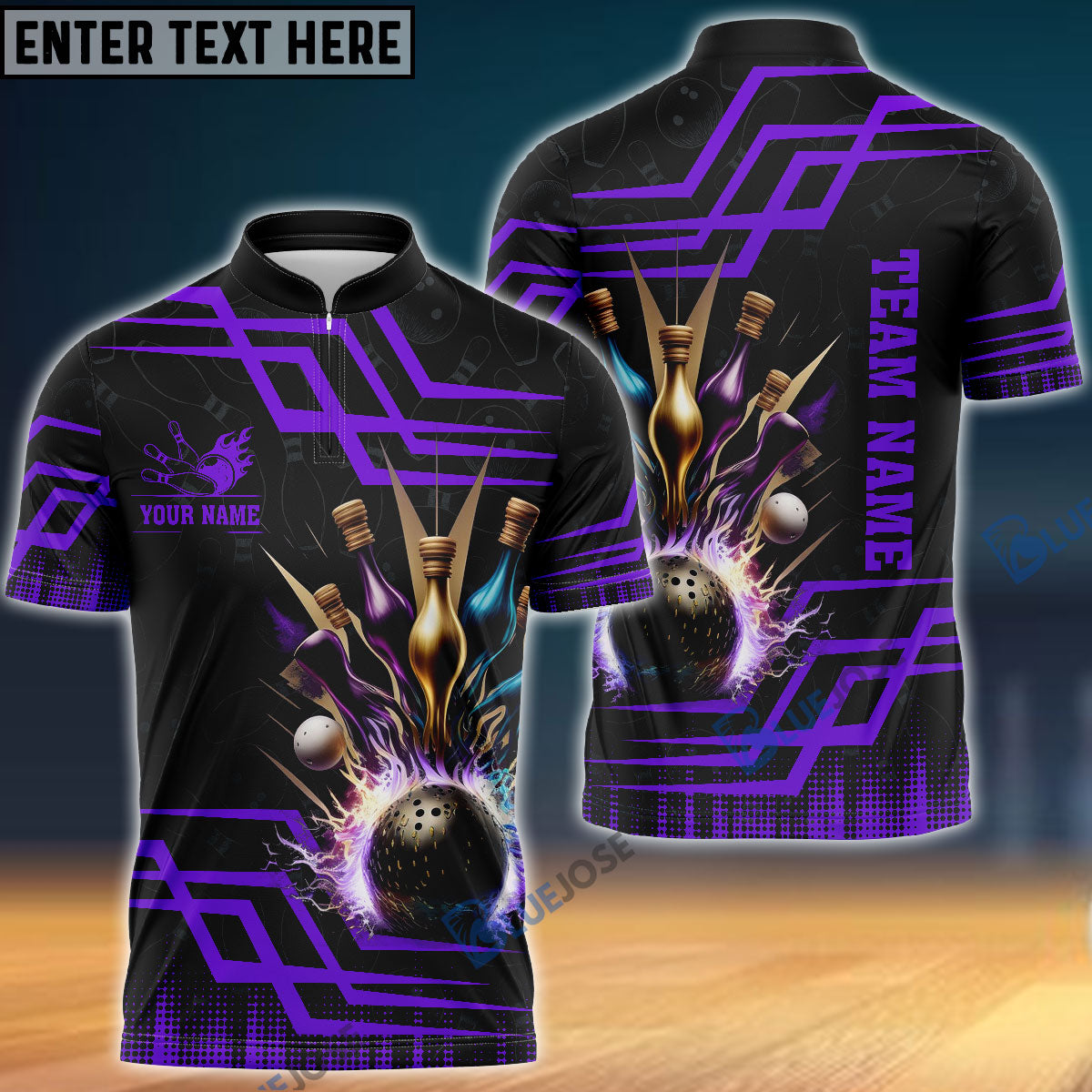 BlueJose Bowling And Pins Royal Multicolor Option Customized Name 3D Shirt (6 Colors), Personalized Shirts For Bowling Players