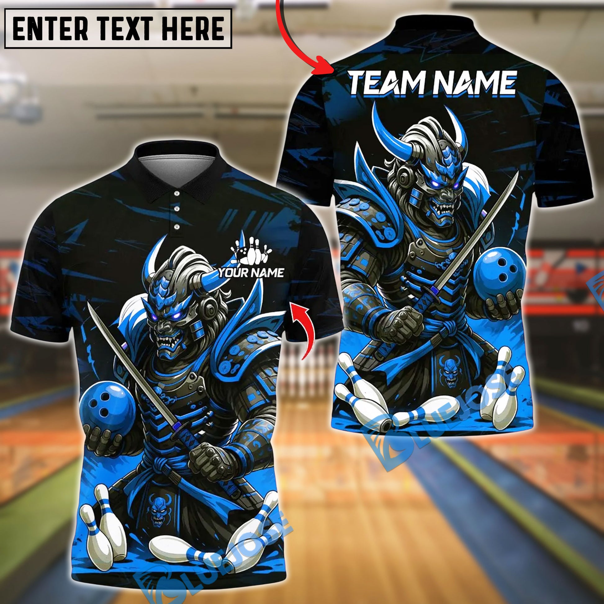 BlueJose Bowling And Pins Samurai Design Customized Name, Team Name 3D Shirt (4 Colors)
