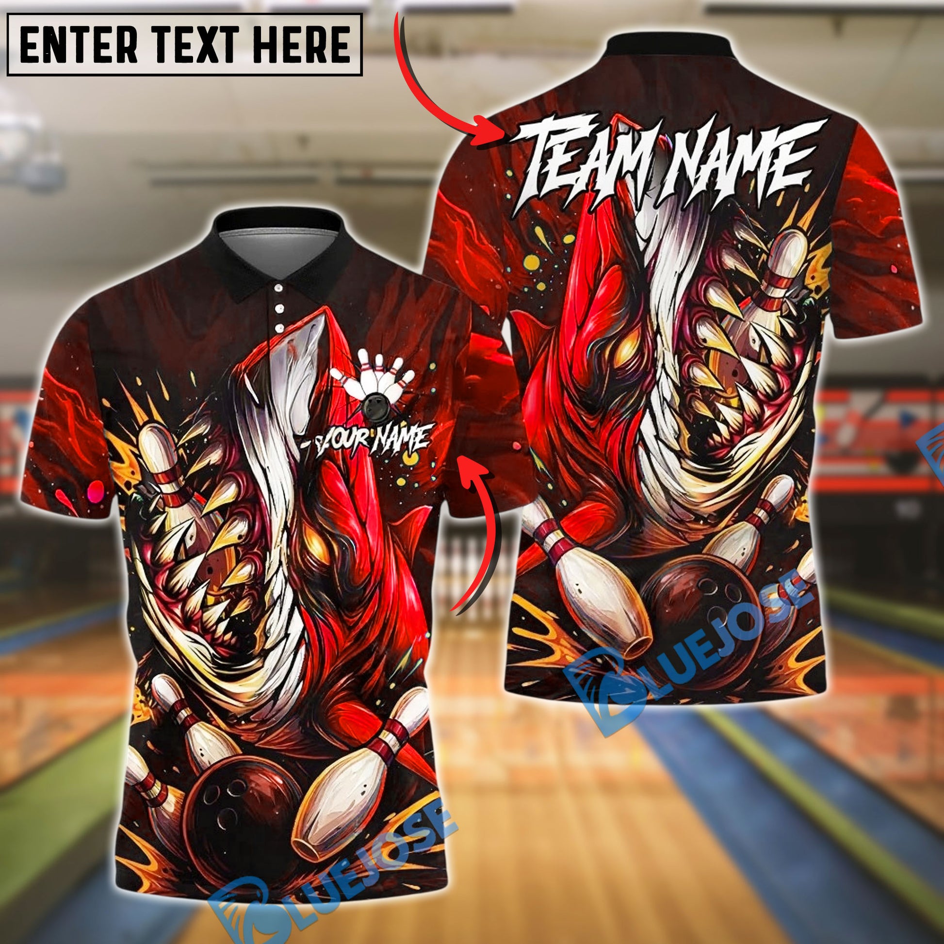 BlueJose Bowling And Pins Scary Fierce Shark Attack Customized Name, Team Name 3D Shirt (4 Colors)