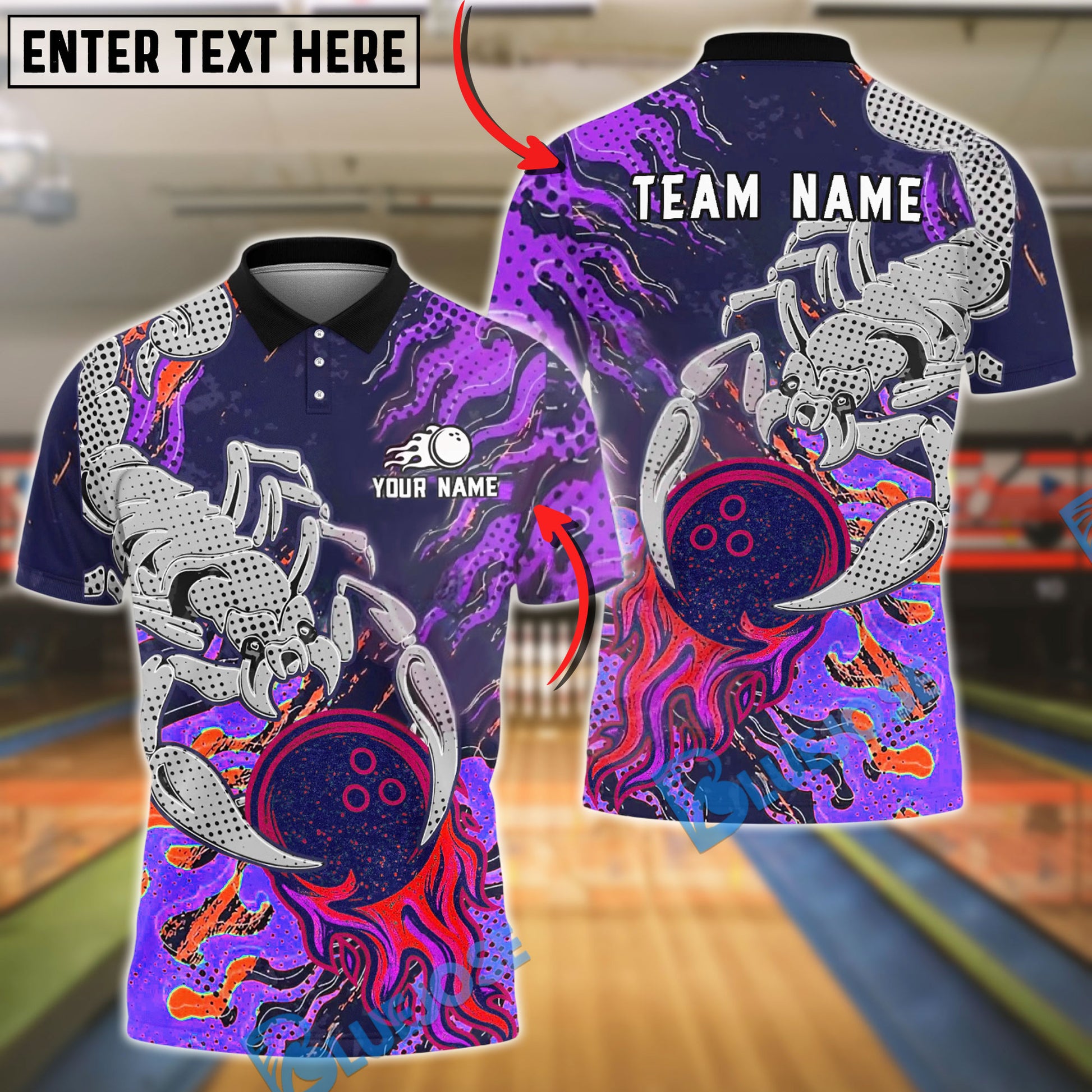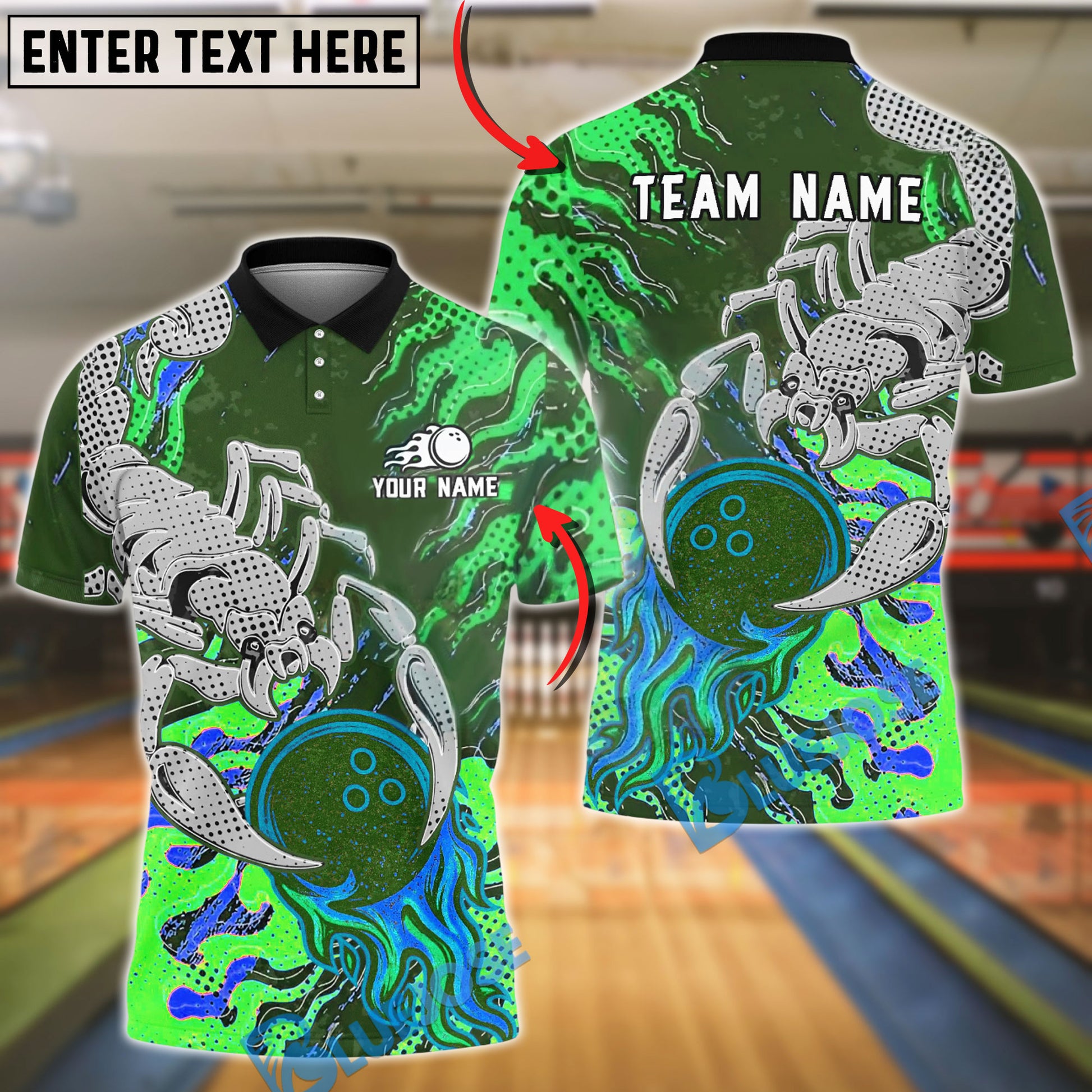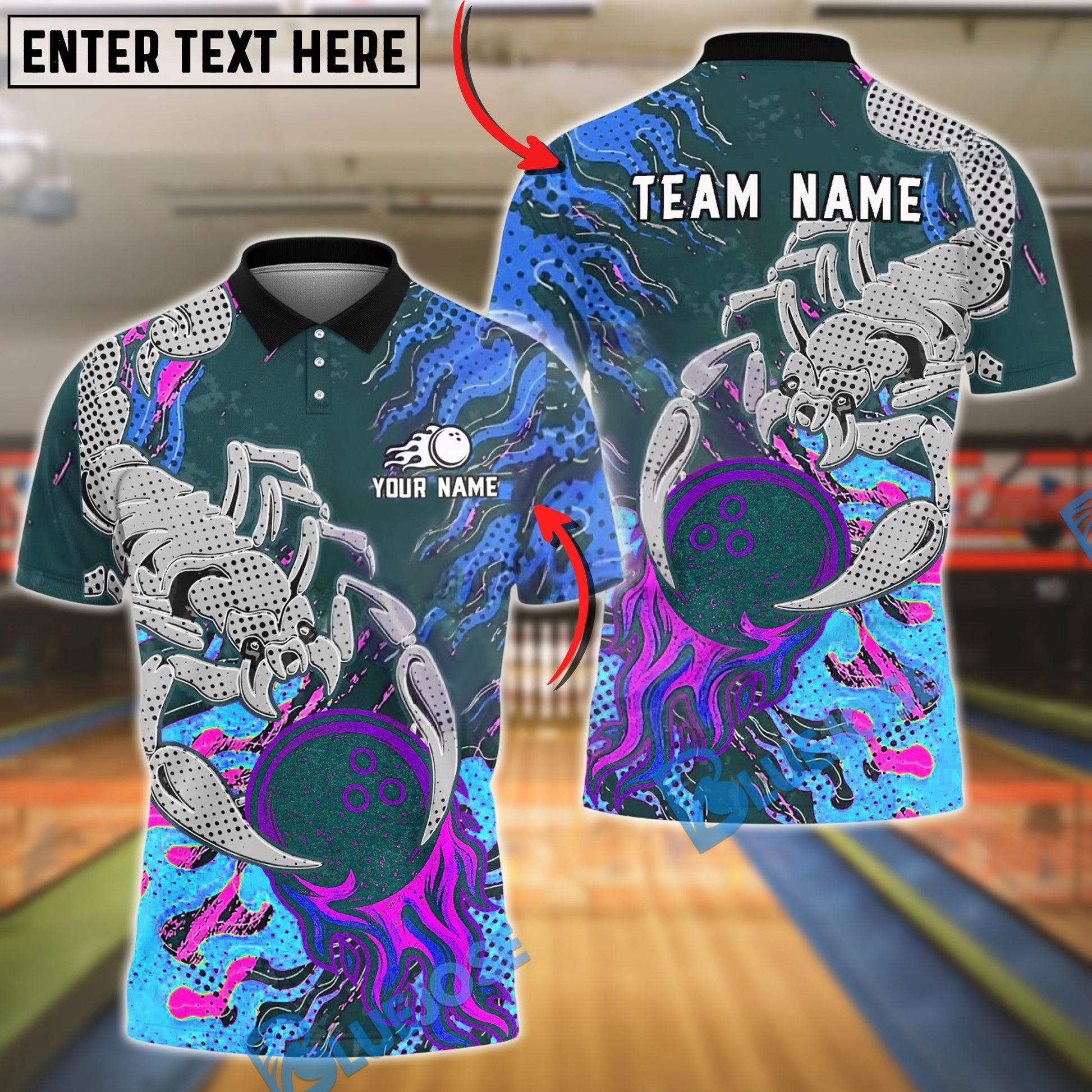 BlueJose Bowling And Pins Scorpion Neon Comic Graphic Customized Name, Team Name 3D Shirt (4 Colors)