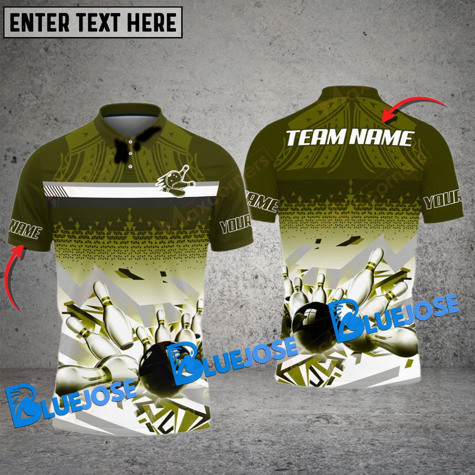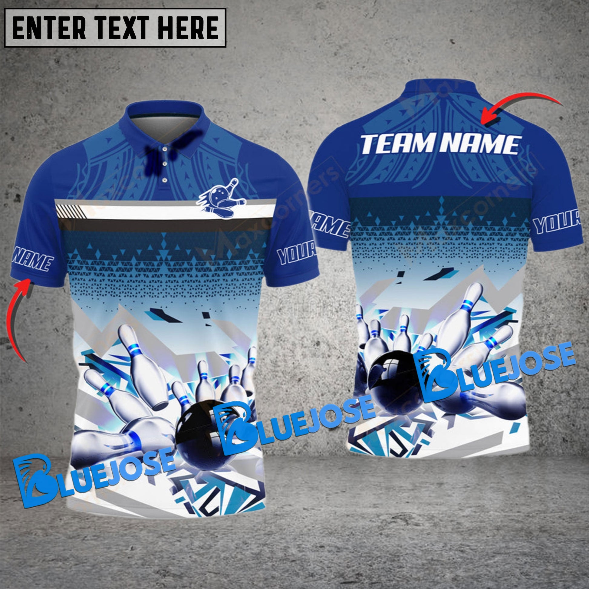 BlueJose Bowling And Pins Silver Line Premium Customized Name 3D Shirt (4 Colors)