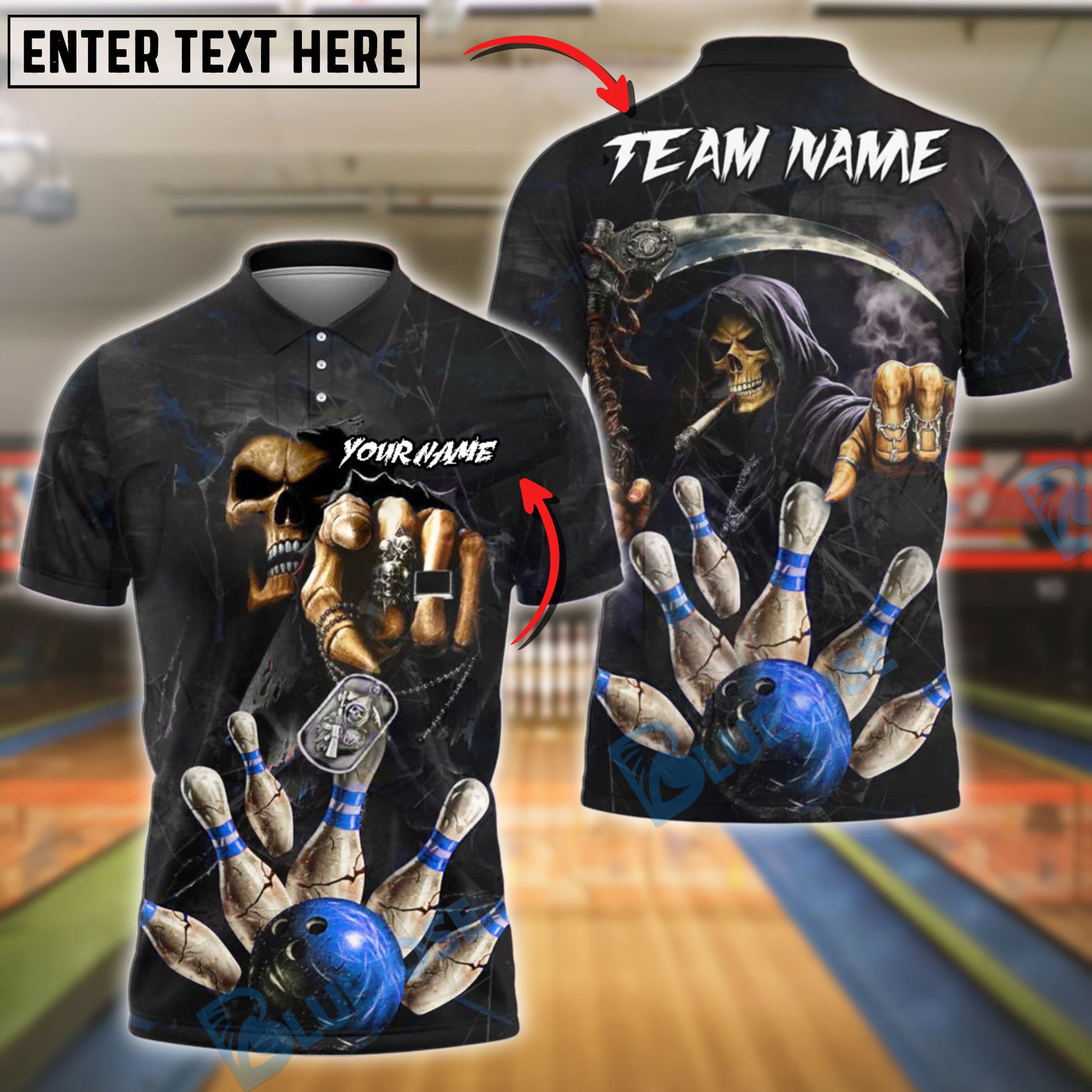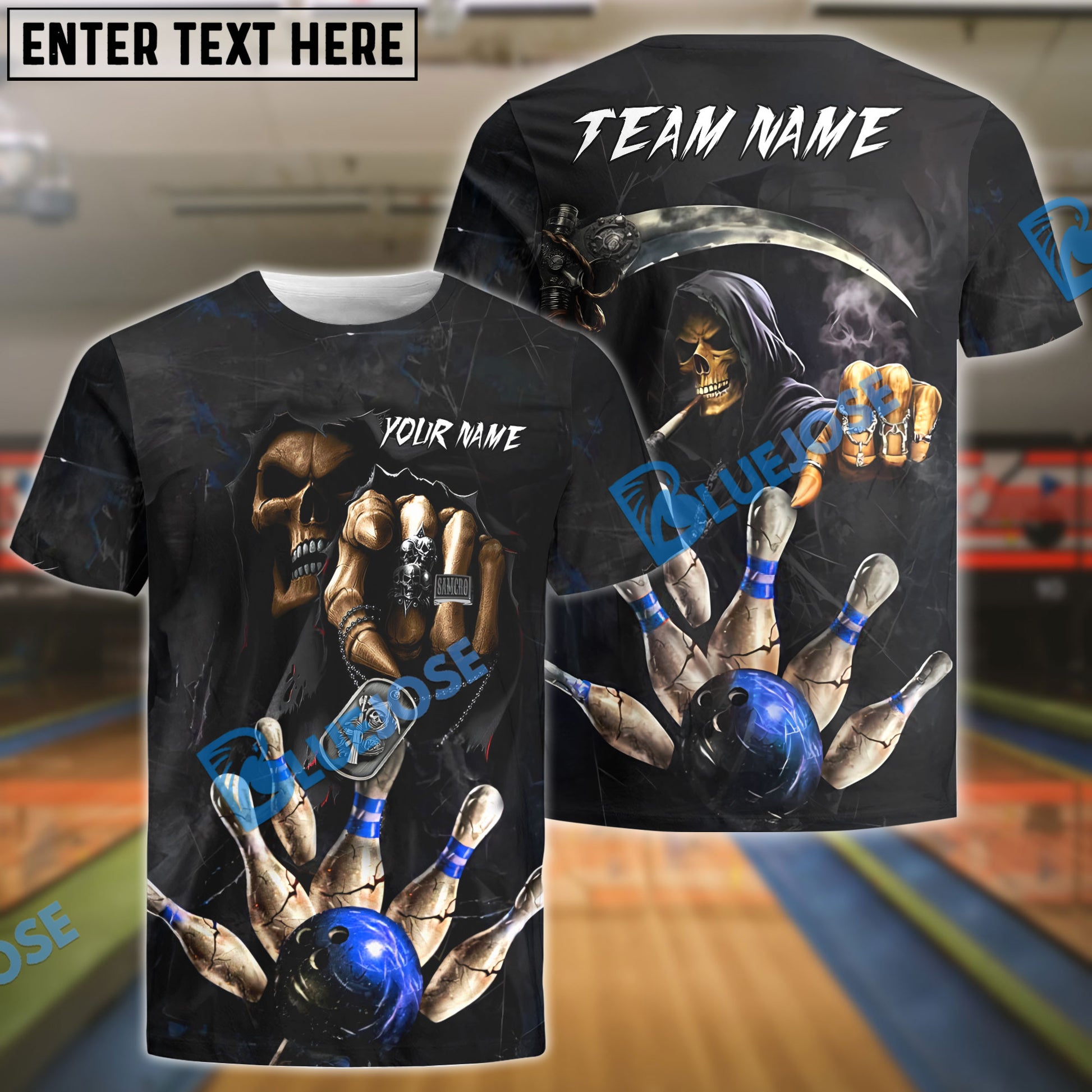 BlueJose Bowling And Pins Skull Strike Customized Name, Team Name 3D Shirt (4 Colors)