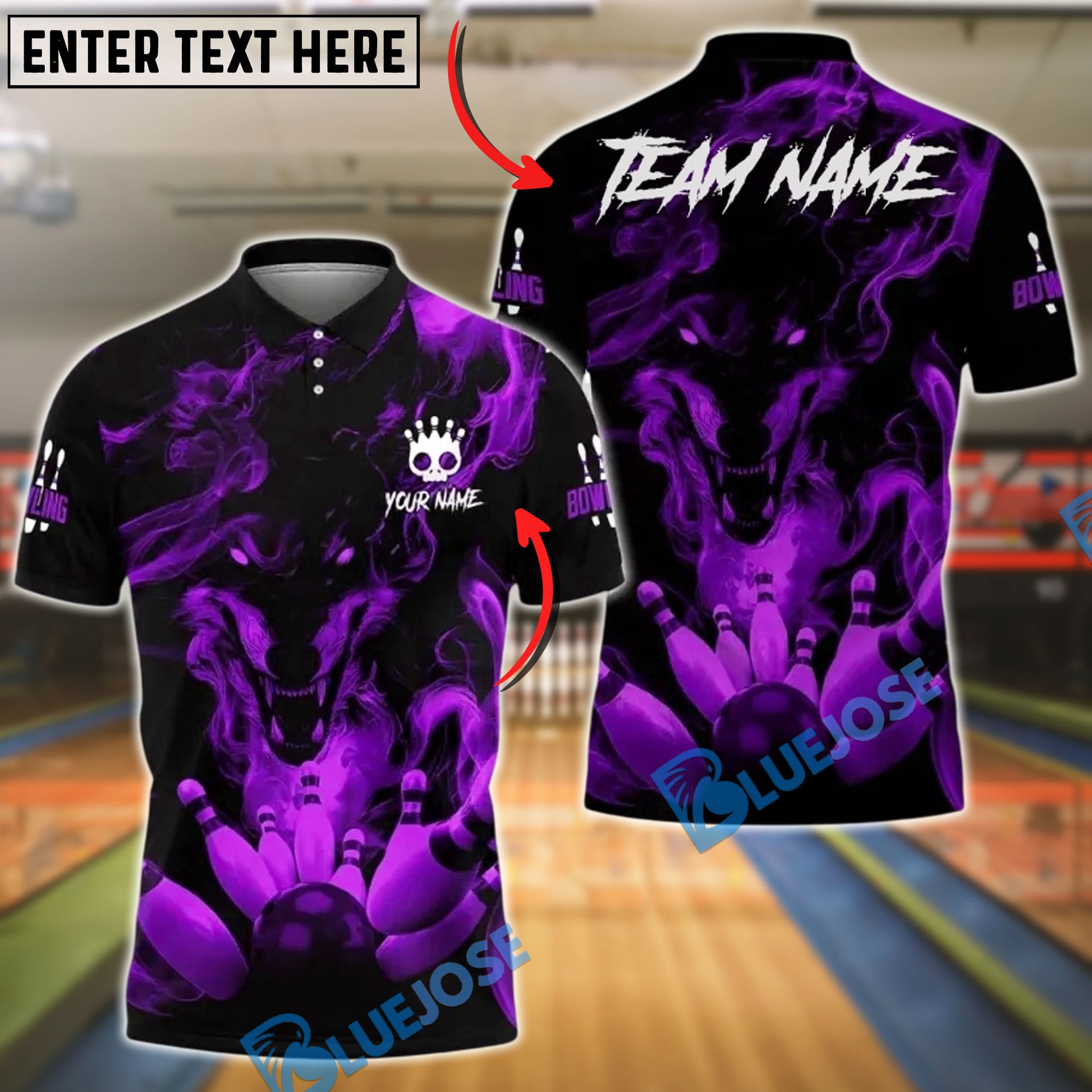 BlueJose Bowling And Pins Smoke Wolf Chaos Customized Name, Team Name 3D Shirt (4 Colors)