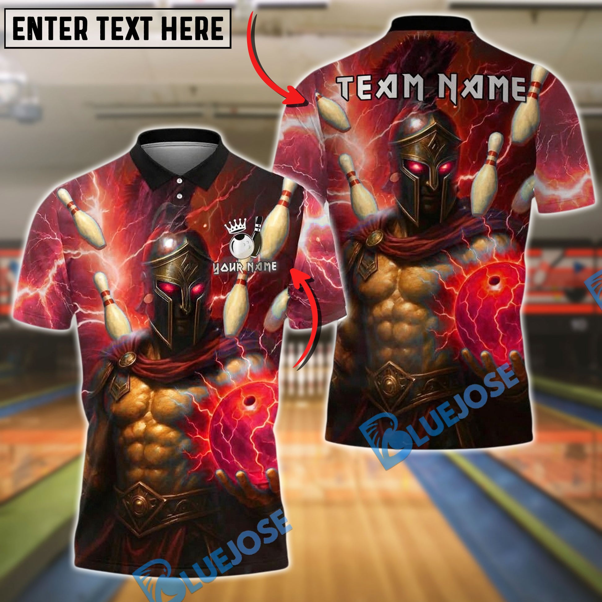 BlueJose Bowling And Pins Spartan Lightning Warrior Customized Name, Team Name 3D Shirt (4 Colors)