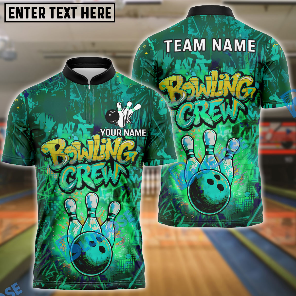 BlueJose Bowling And Pins Spray Bowling Crew Customized Name, Team Name 3D Shirt (4 Colors)