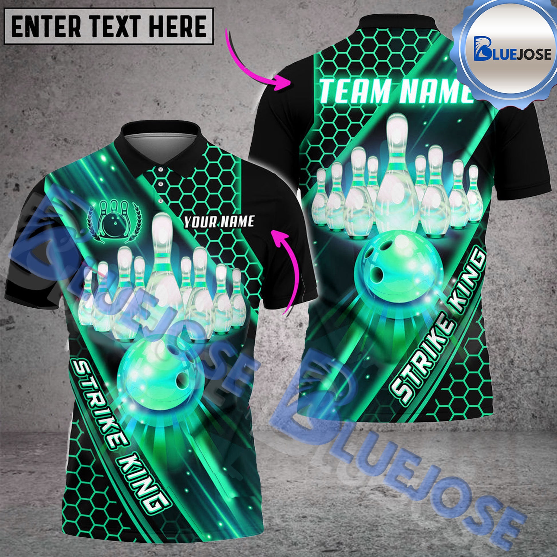 BlueJose Bowling And Pins Strike King Customized Name 3D Shirt (4 Colors)