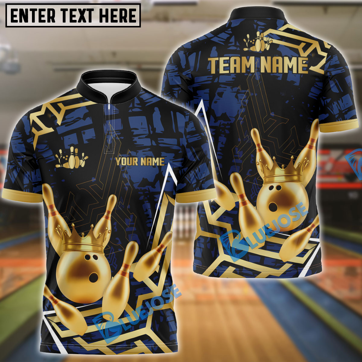 BlueJose Bowling And Pins Strike Warrior Golden Pattern Customized Name 3D Shirt (4 Colors)