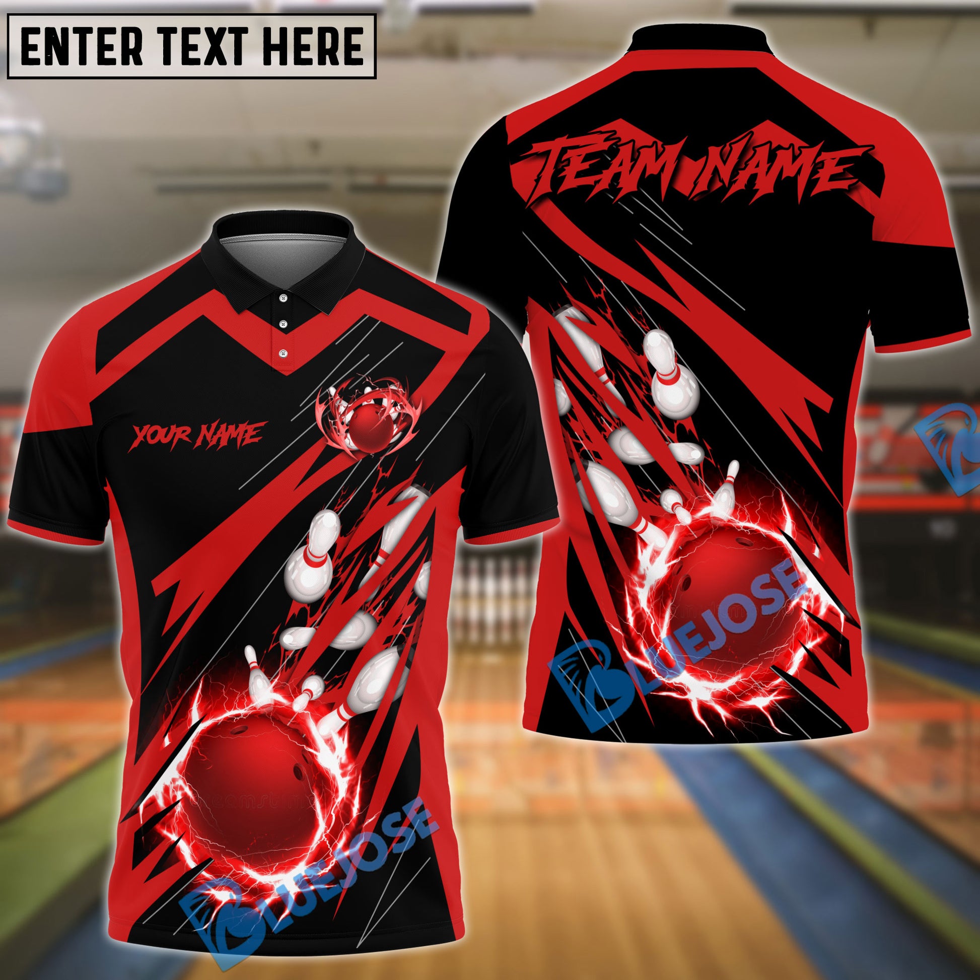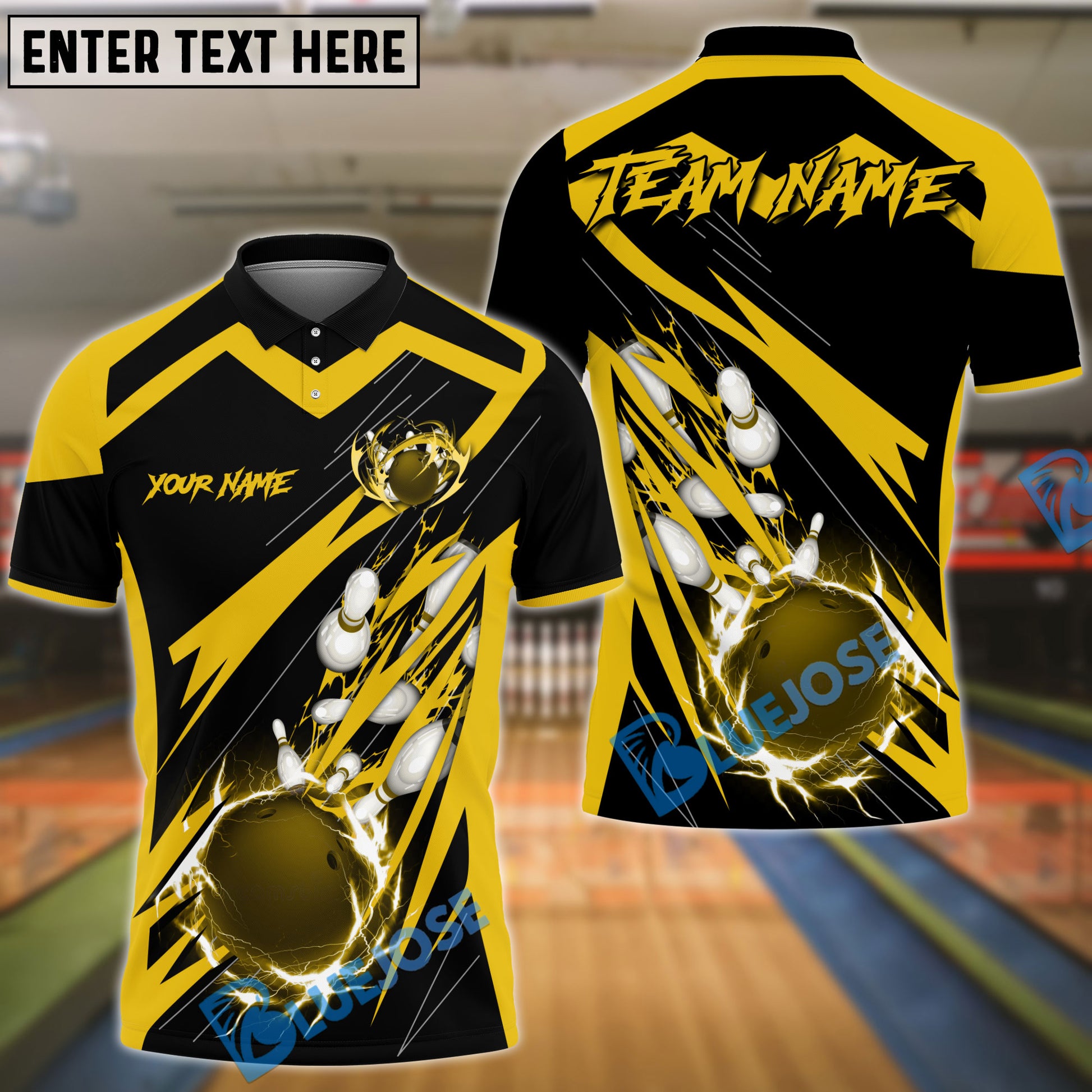 BlueJose Bowling And Pins Thunder Falling Pattern Customized Name, Team Name 3D Shirt (4 Colors)