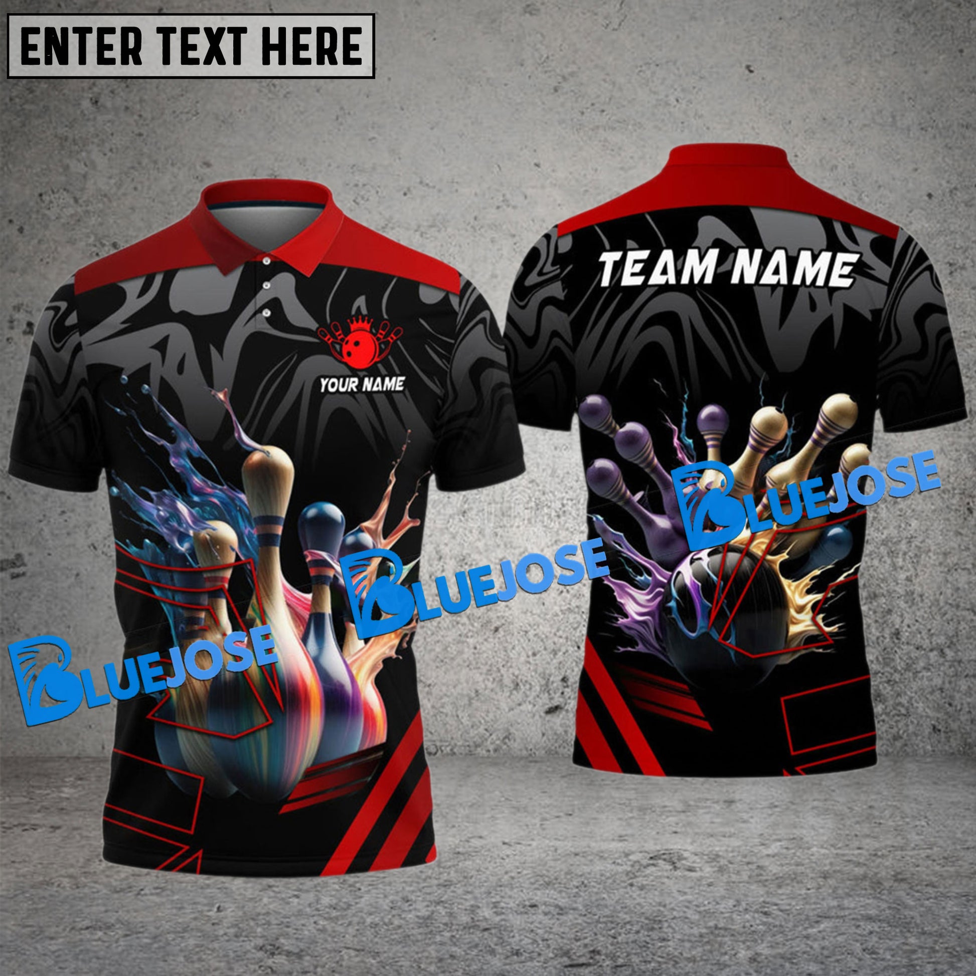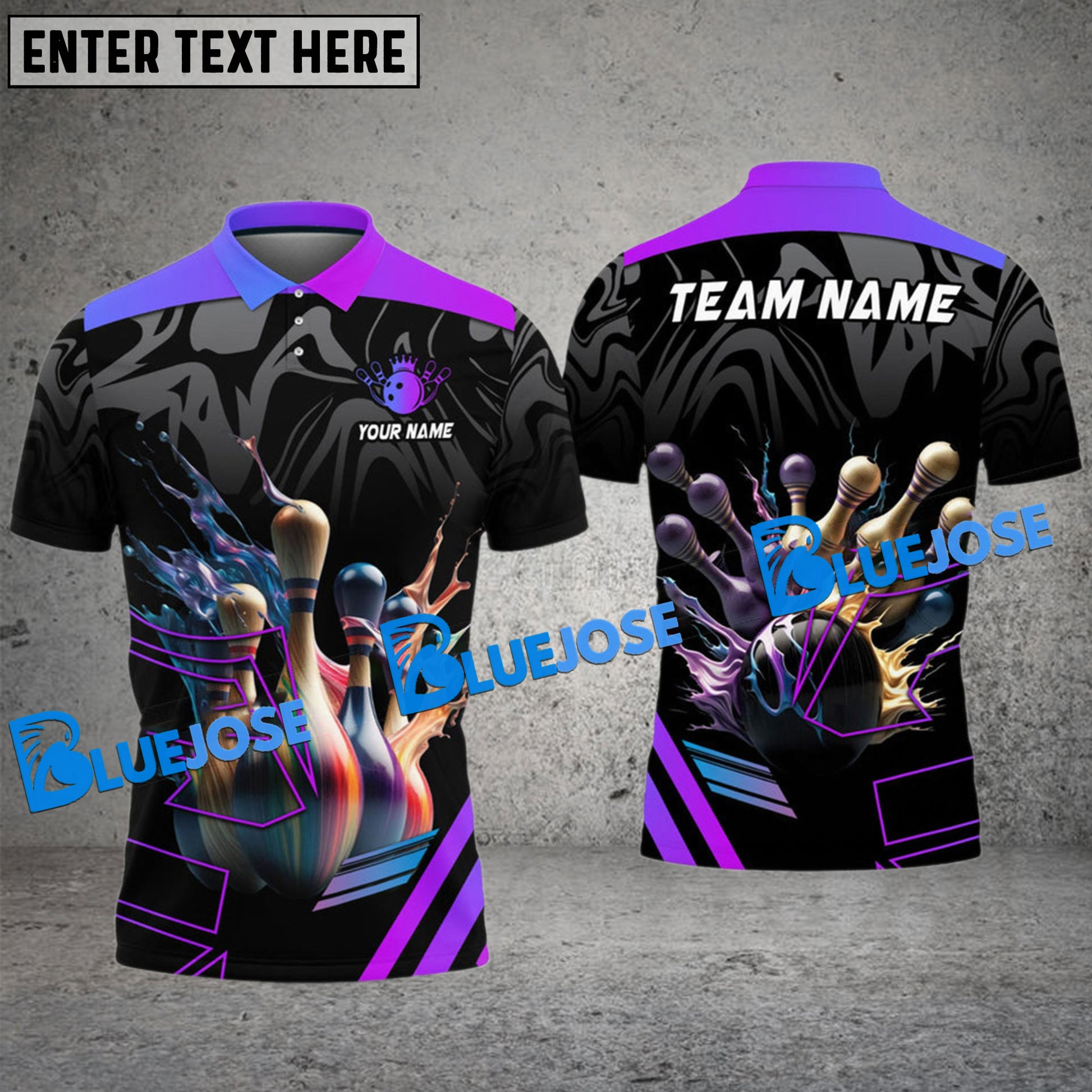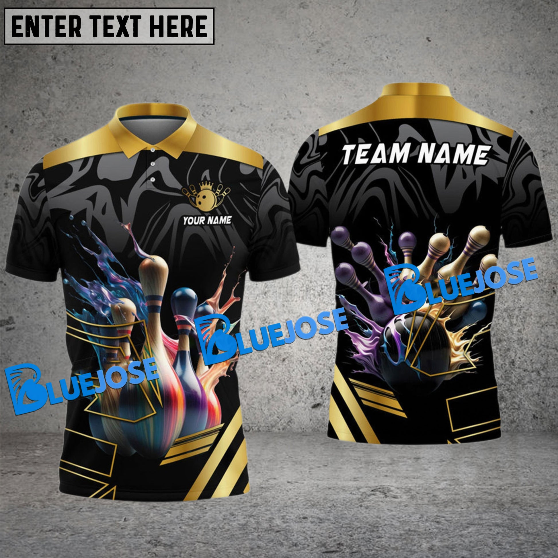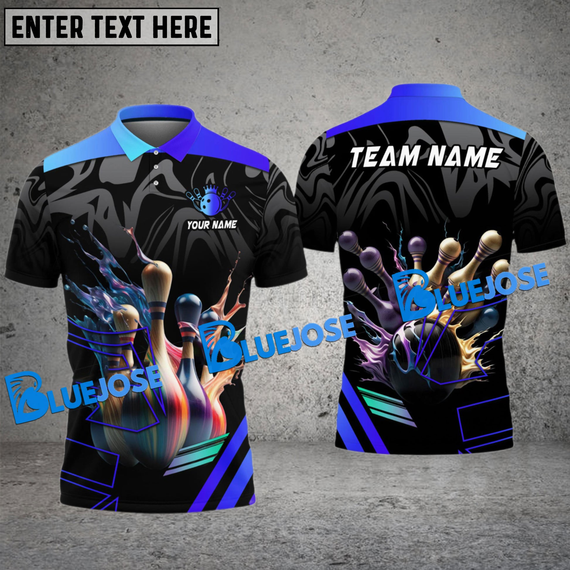 BlueJose Bowling And Pins Thunder Strike Customized Name 3D Shirt (4 Colors)
