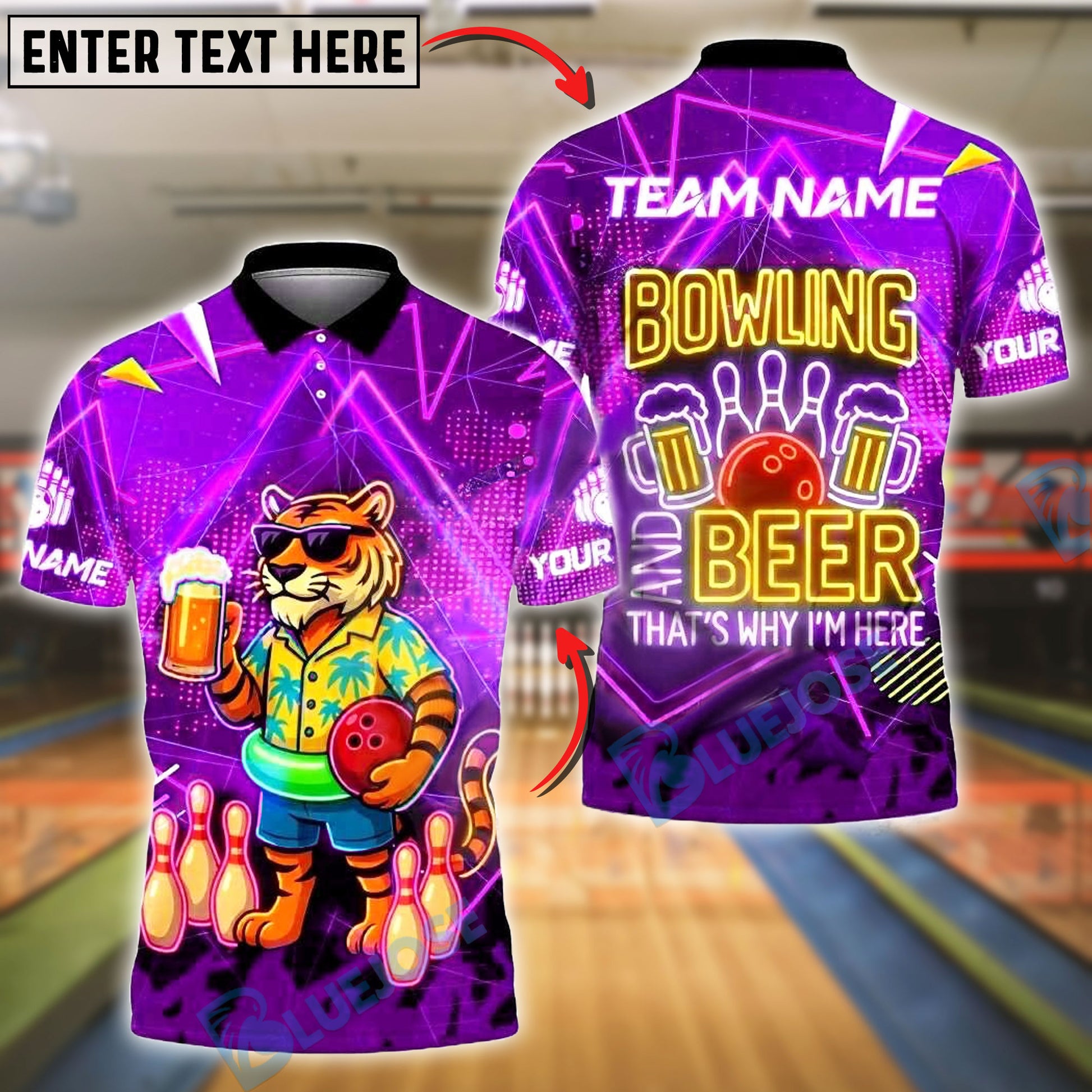 BlueJose Bowling And Pins Tiger Beer Neon Glow Customized Name, Team Name 3D Shirt (4 Colors)