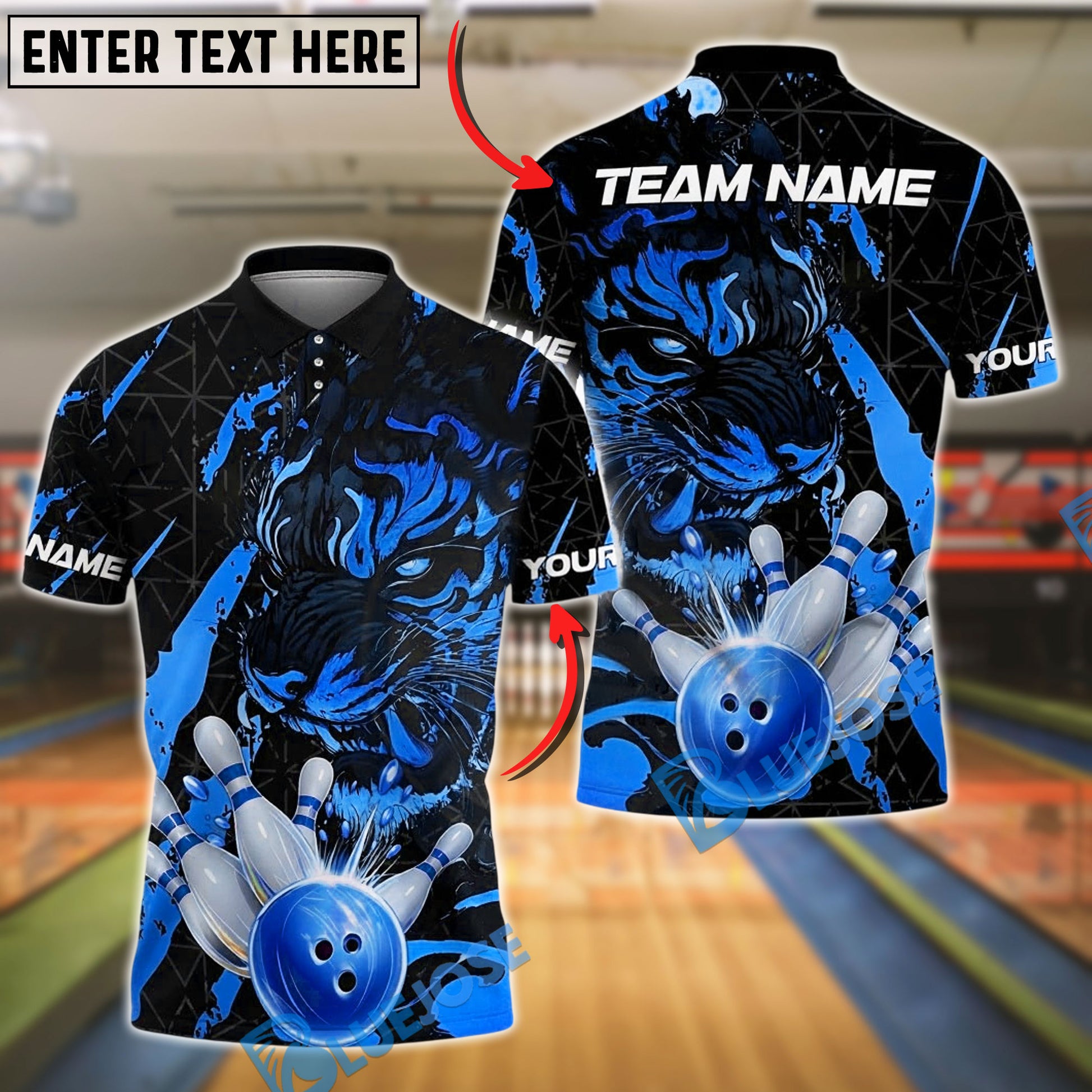 BlueJose Bowling And Pins Tiger Golden Ball Striking Pins Customized Name, Team Name 3D Shirt (4 Colors)