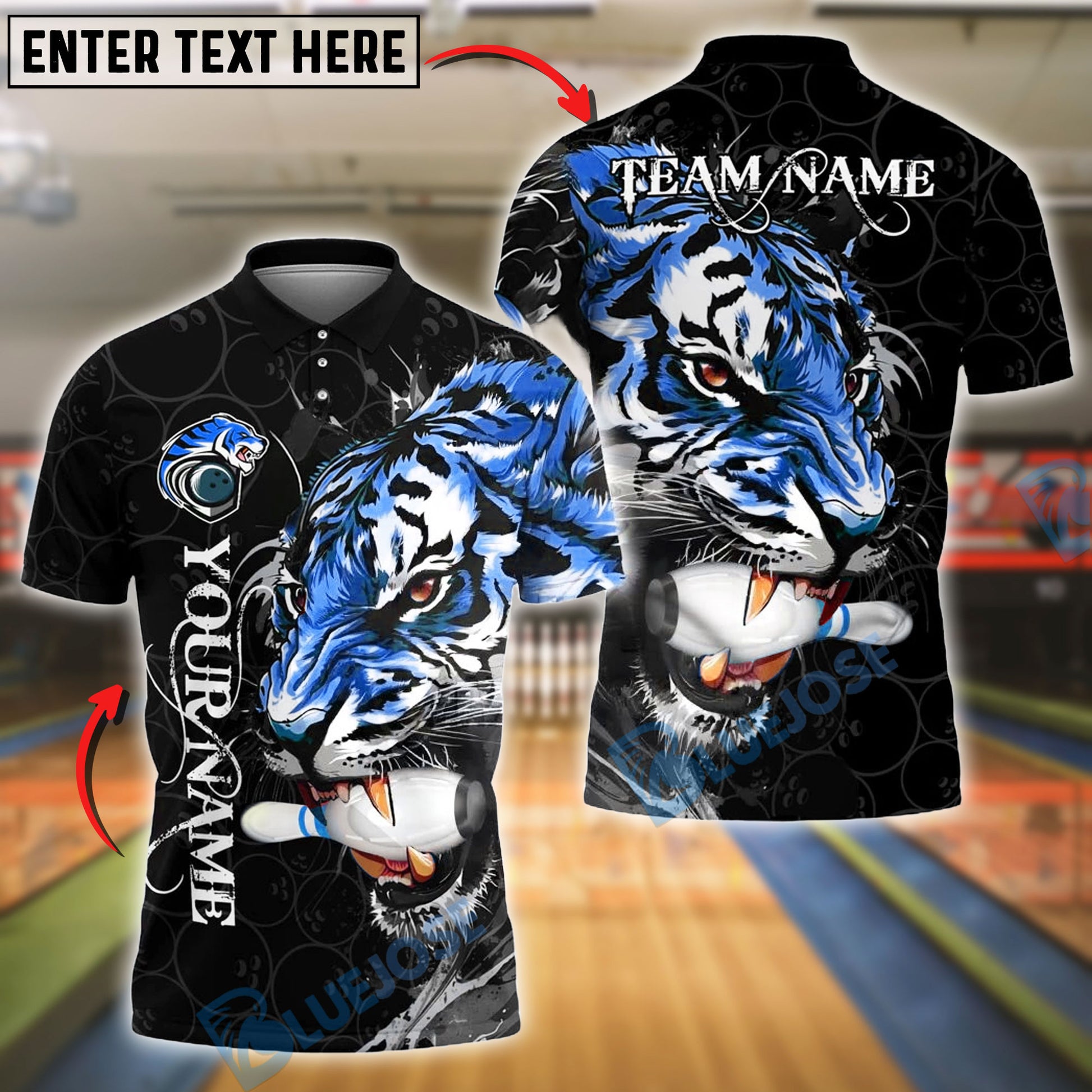 BlueJose Bowling And Pins Tiger Strike Customized Name, Team Name 3D Shirt (4 Colors)