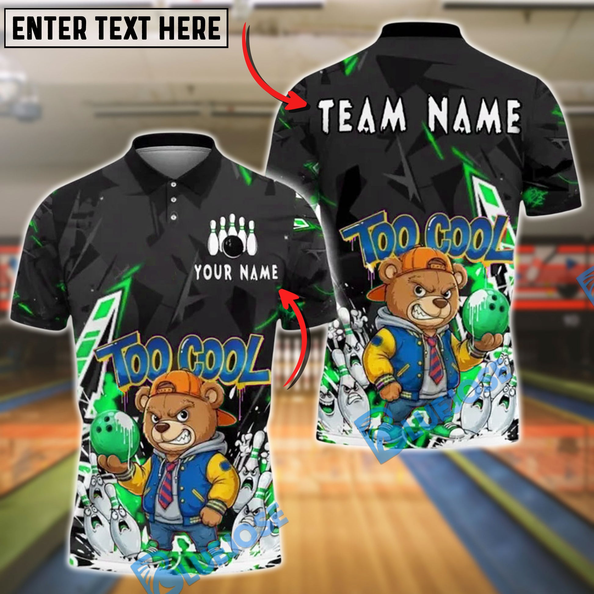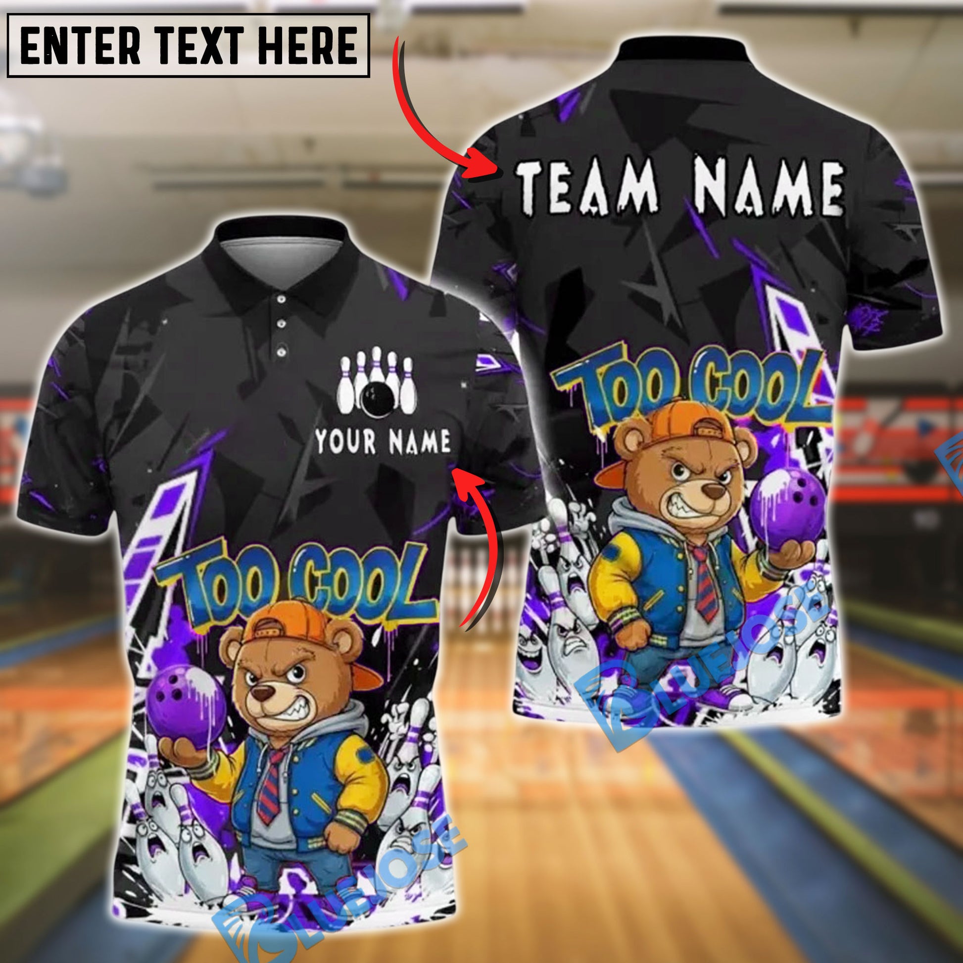 BlueJose Bowling And Pins Too Cool Bear Cartoon Graffiti Customized Name, Team Name 3D Shirt (4 Colors)