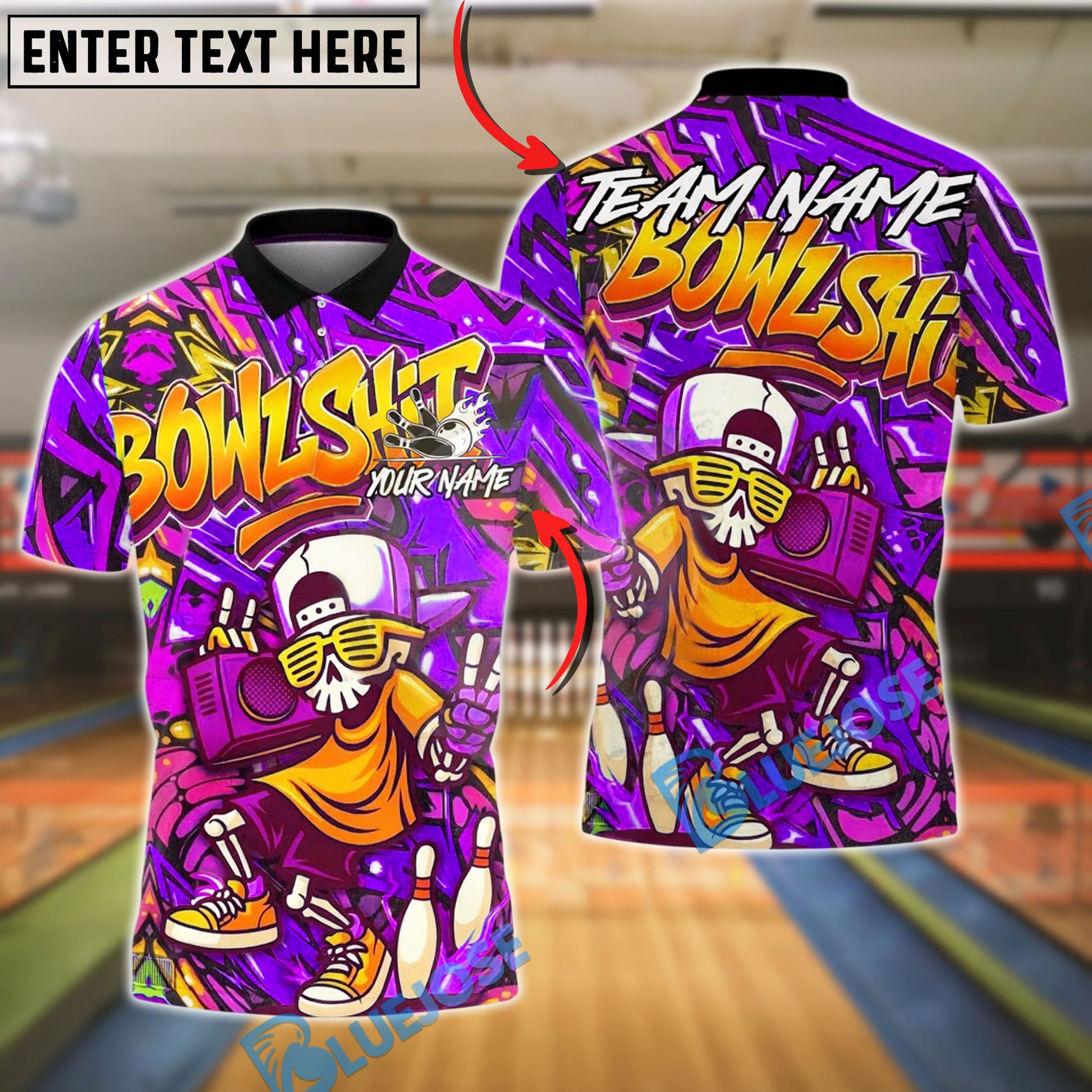 BlueJose Bowling And Pins Urban Graffiti Cool Skeleton Customized Name, Team Name 3D Shirt (4 Colors)