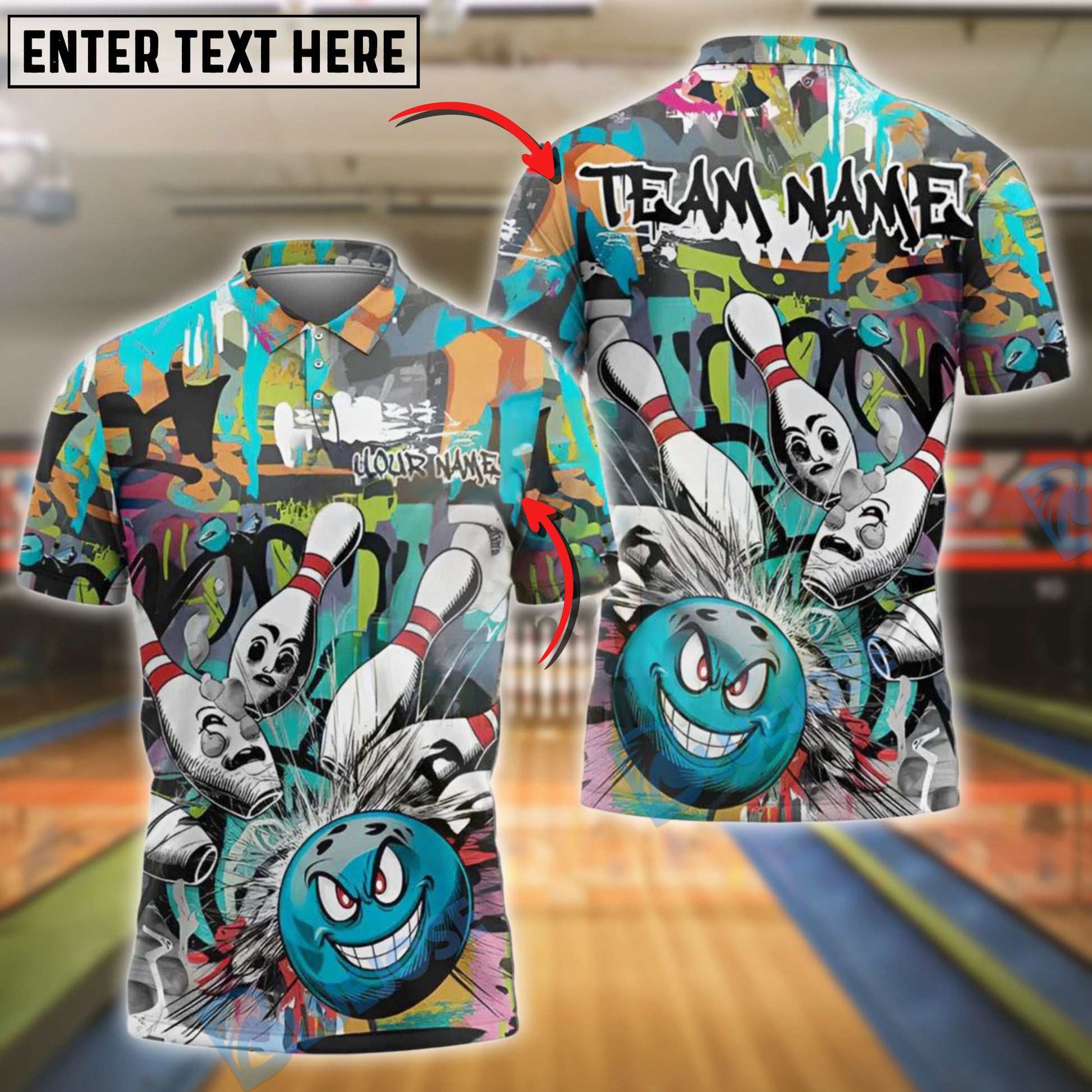 BlueJose Bowling And Pins Urban Impact Customized Name, Team Name 3D Shirt (4 Colors)