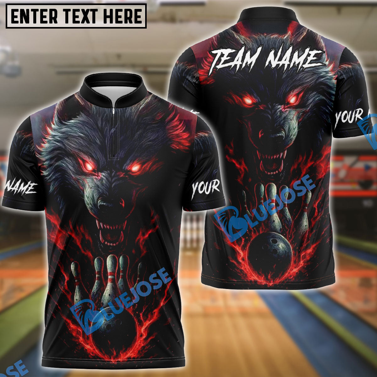 BlueJose Bowling And Pins Werewolf Eyes Thunder Customized Name, Team Name 3D Shirt (4 Colors)