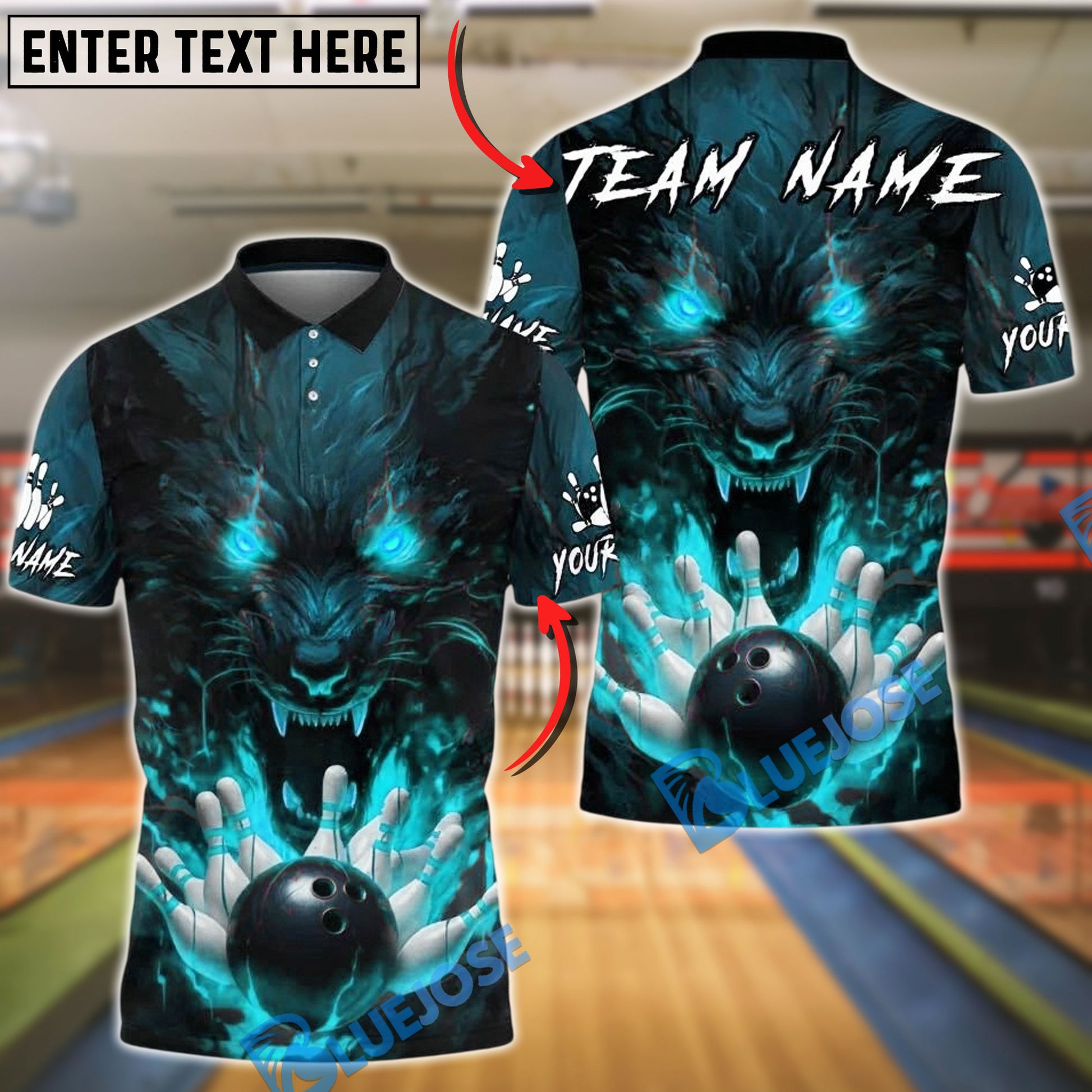 BlueJose Bowling And Pins Werewolf Fire Eyes Customized Name, Team Name 3D Shirt (4 Colors)
