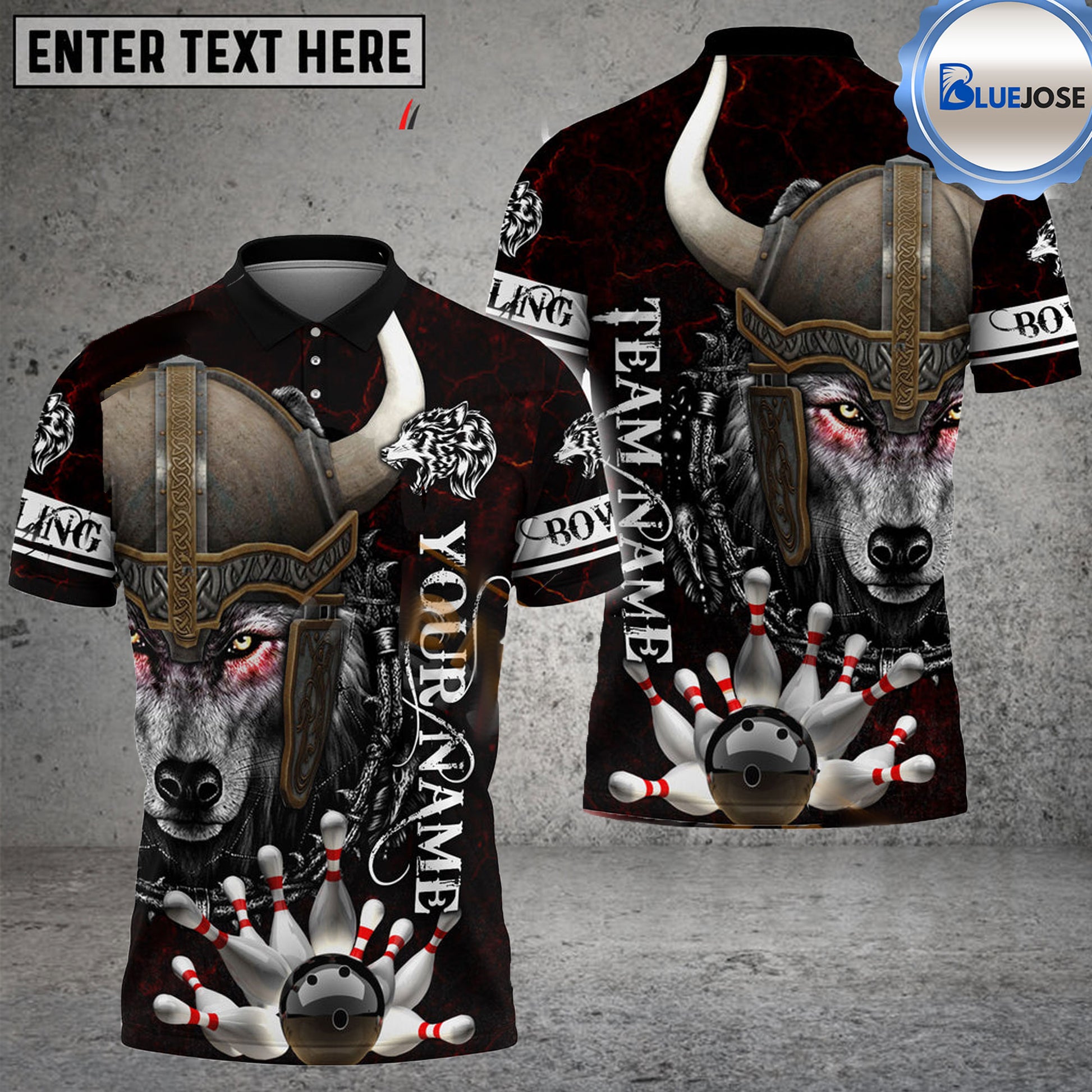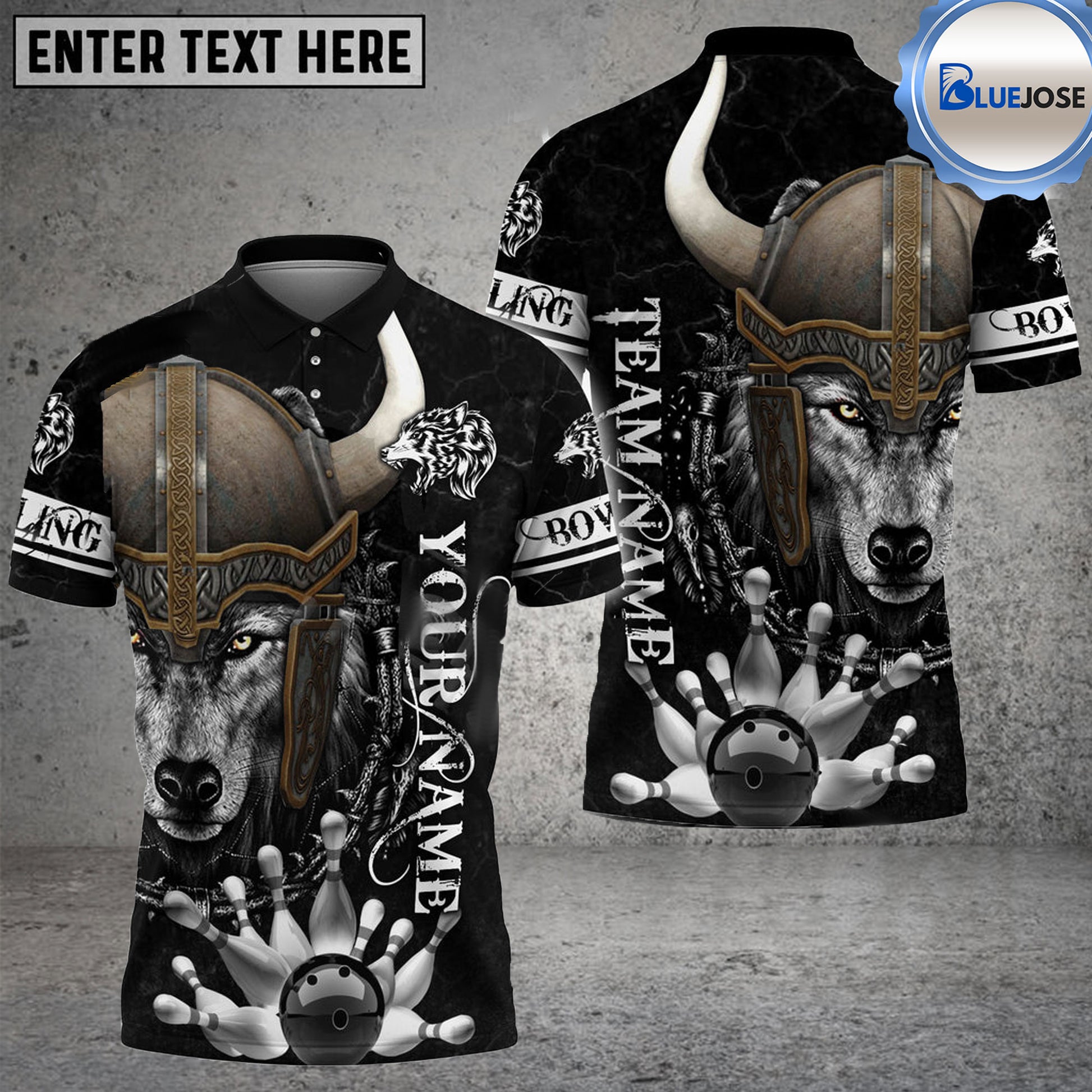 BlueJose Bowling And Pins Wolf Viking Warrior Customized Name 3D Shirt (4 Colors)