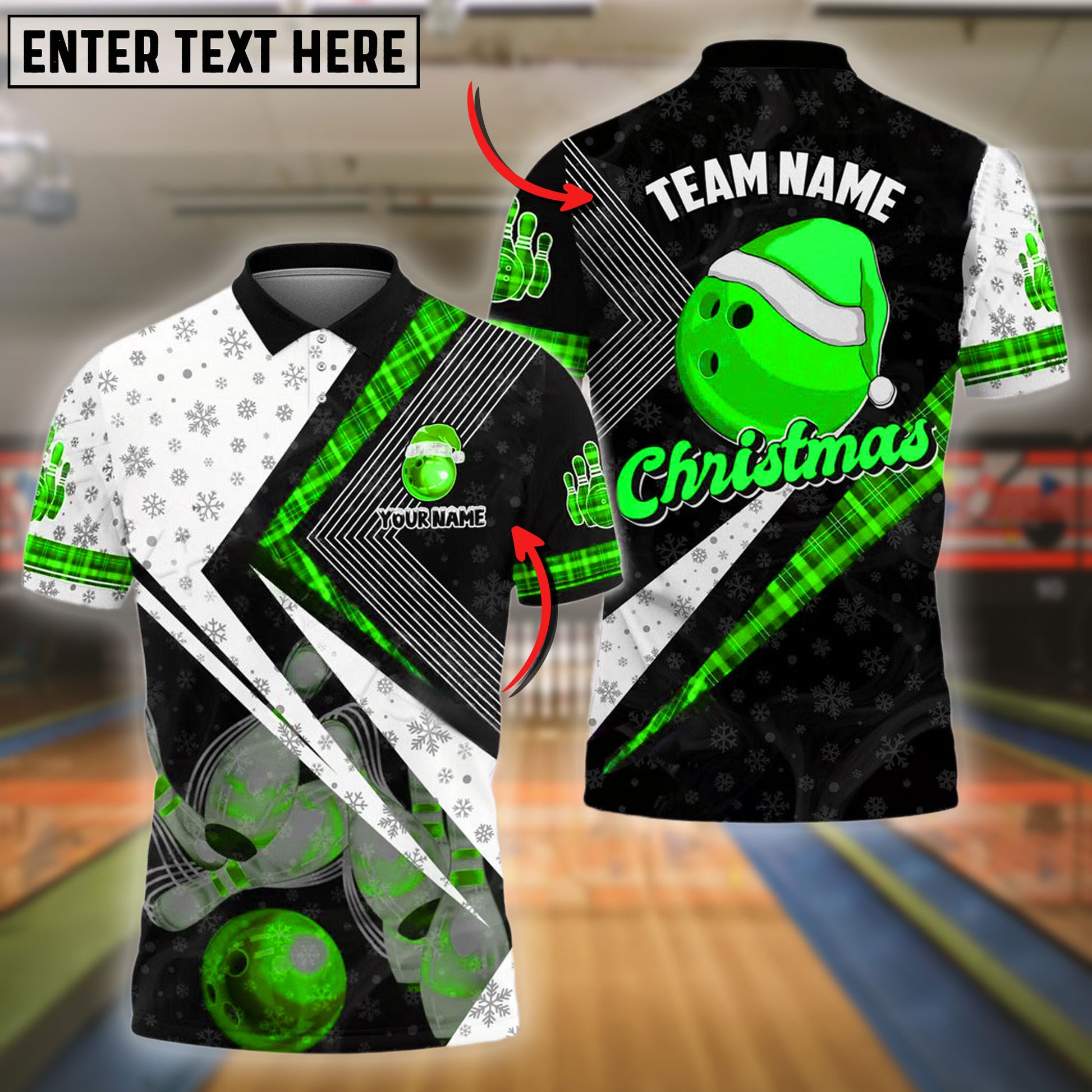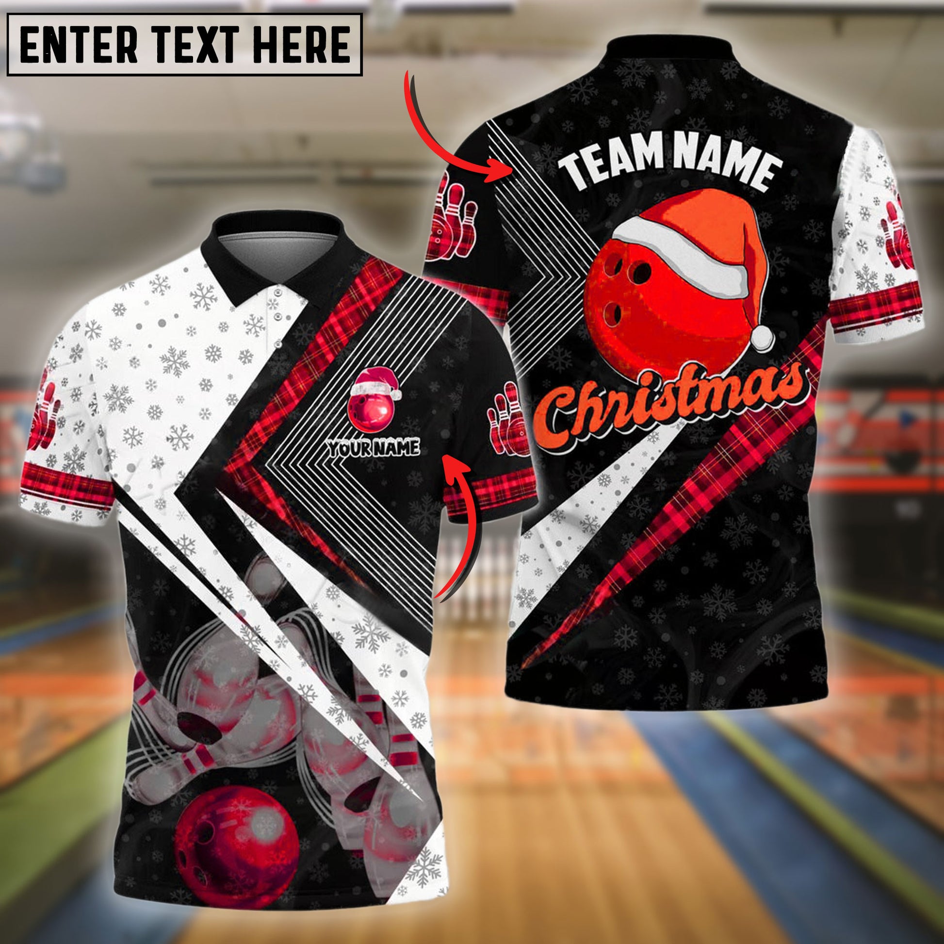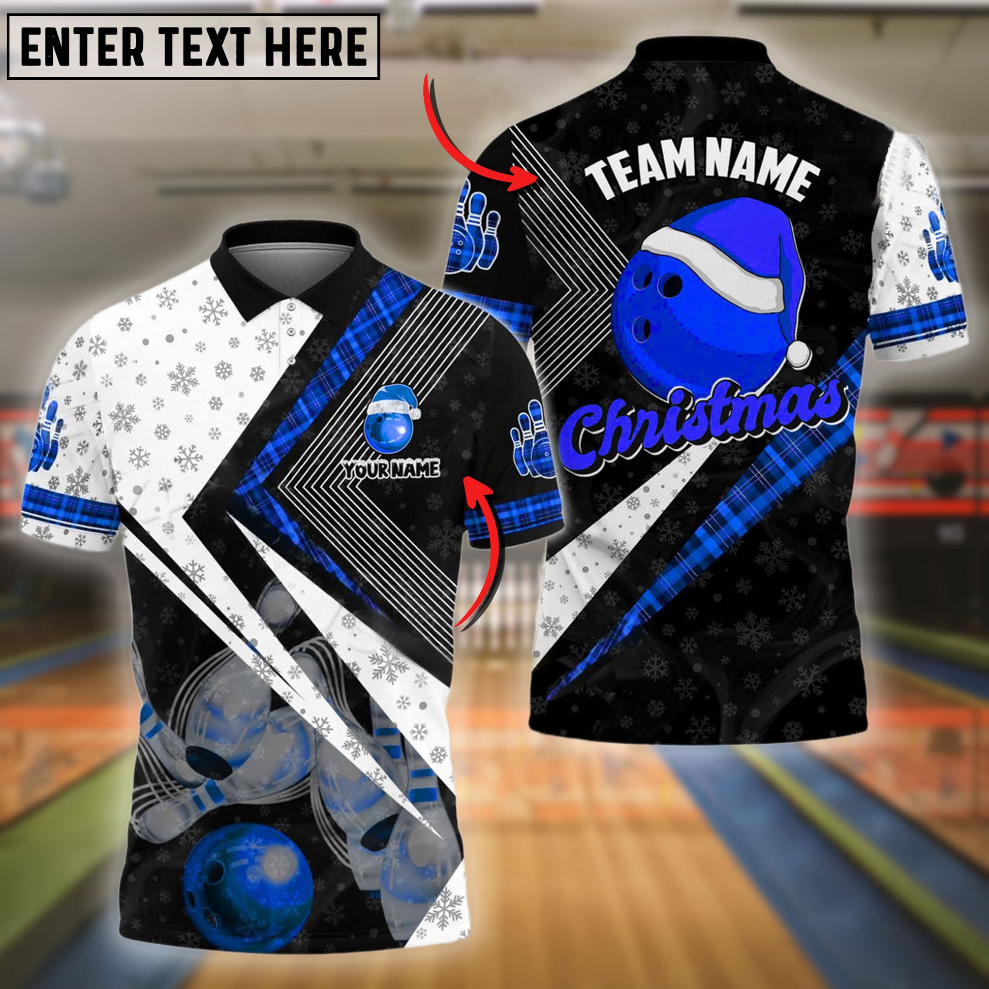 BlueJose Bowling And Pins Xmas Style Customized Name 3D Shirt (4 Colors)