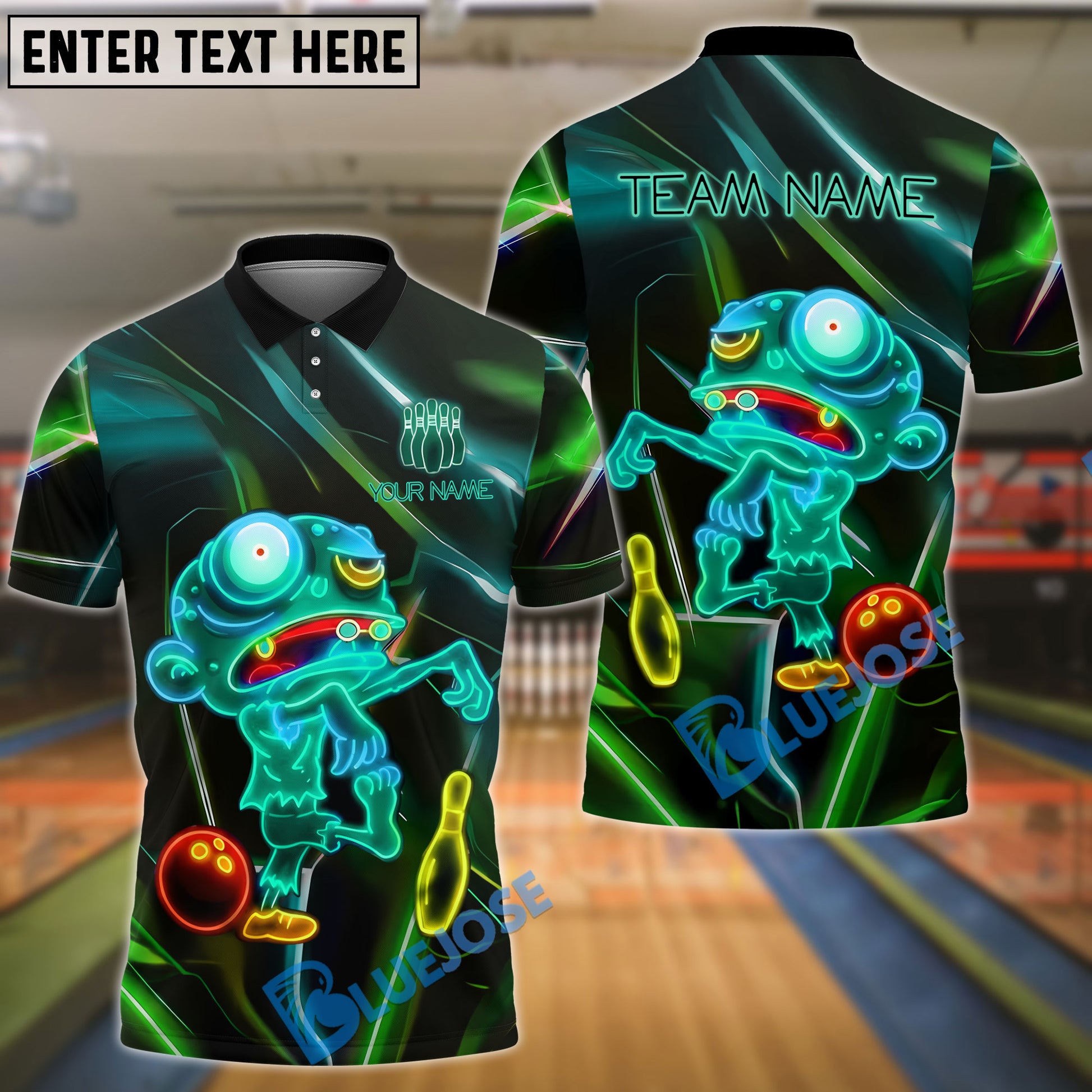 BlueJose Bowling And Pins Zombie Neon Glow Customized Name, Team Name 3D Shirt (4 Colors)