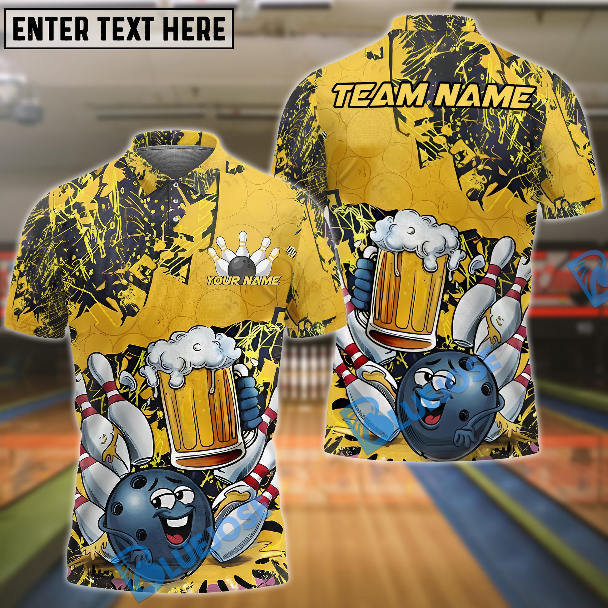 BlueJose Bowling Beer Mug Funny Ball Customized Name, Team Name 3D Shirt