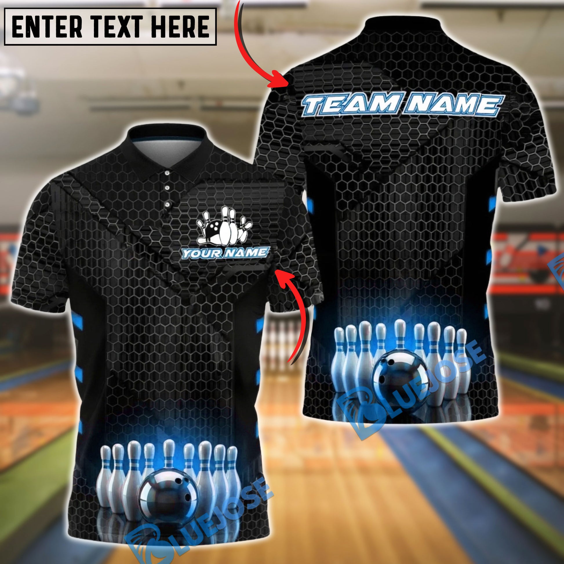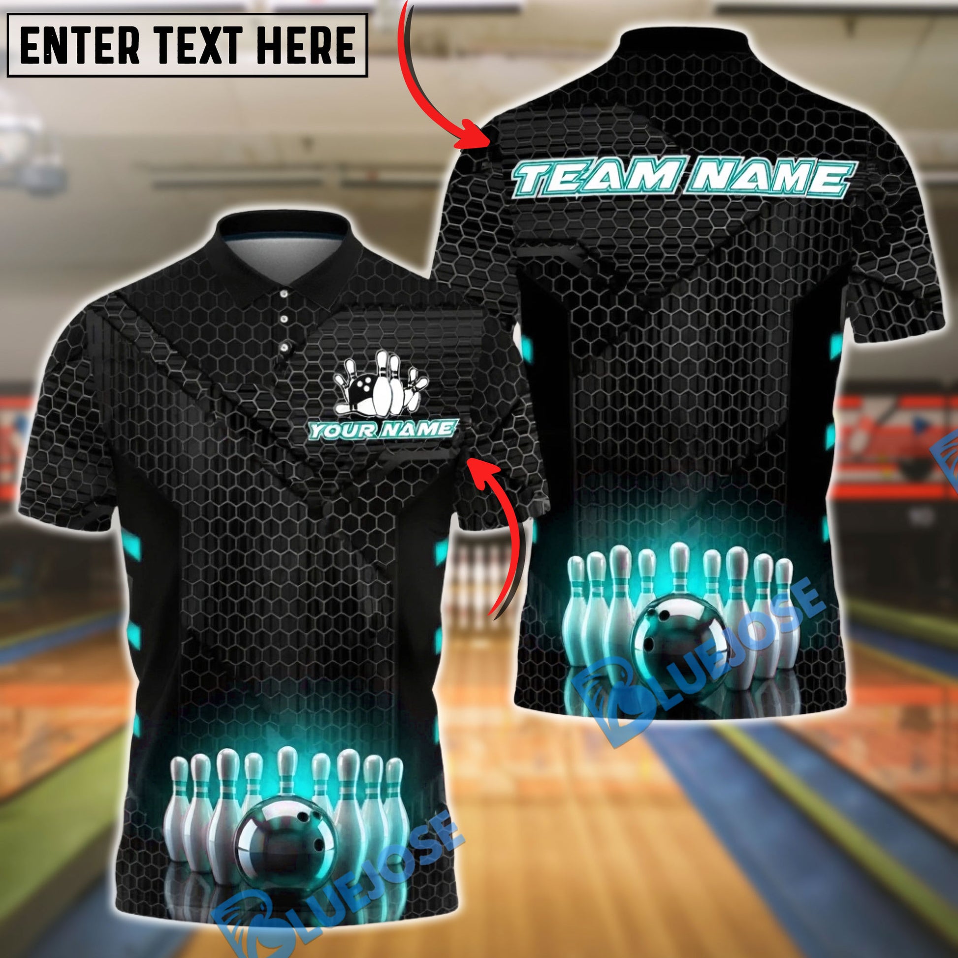 BlueJose Bowling Black Hexagon Tech Pattern Customized Name, Team Name 3D Shirt (4 Colors)