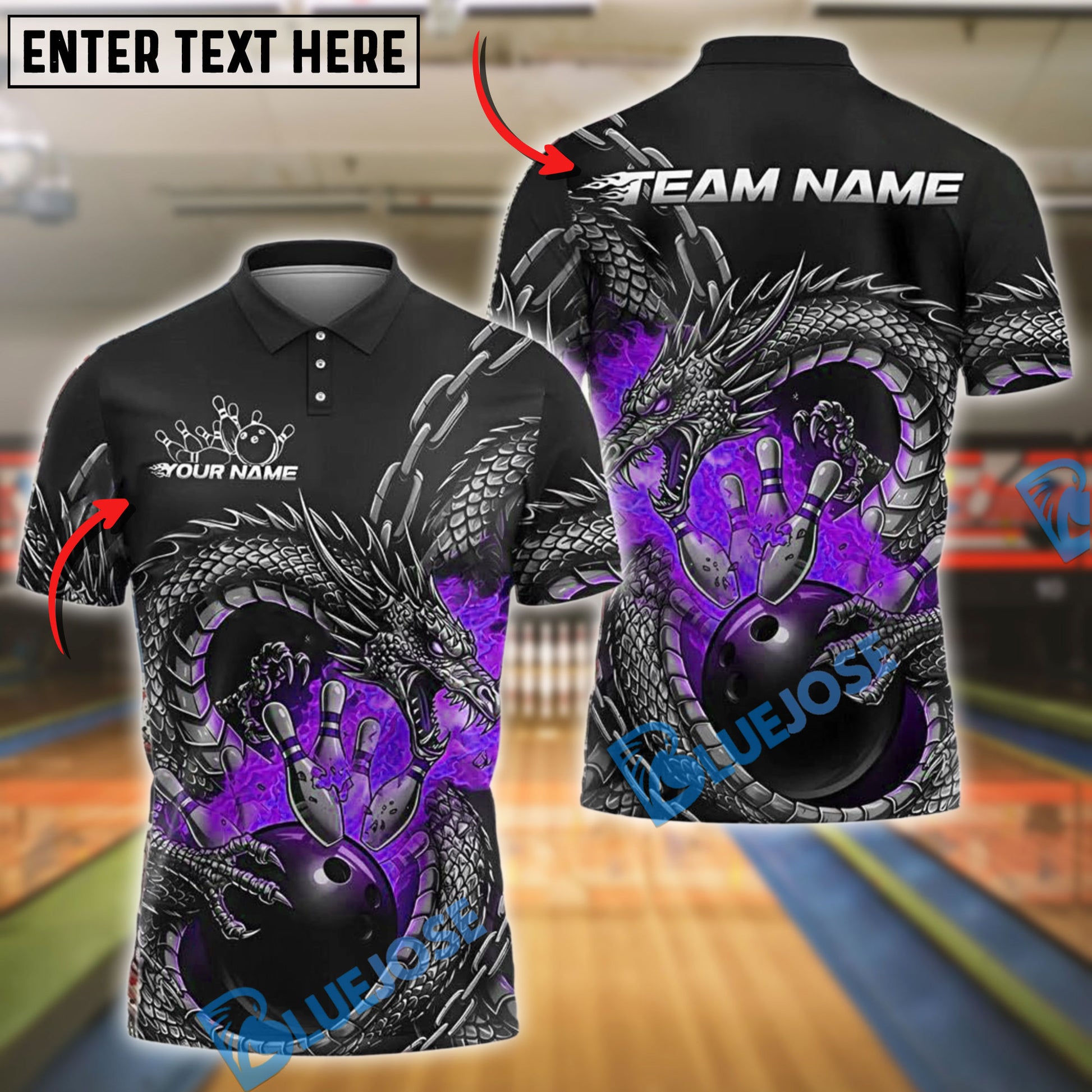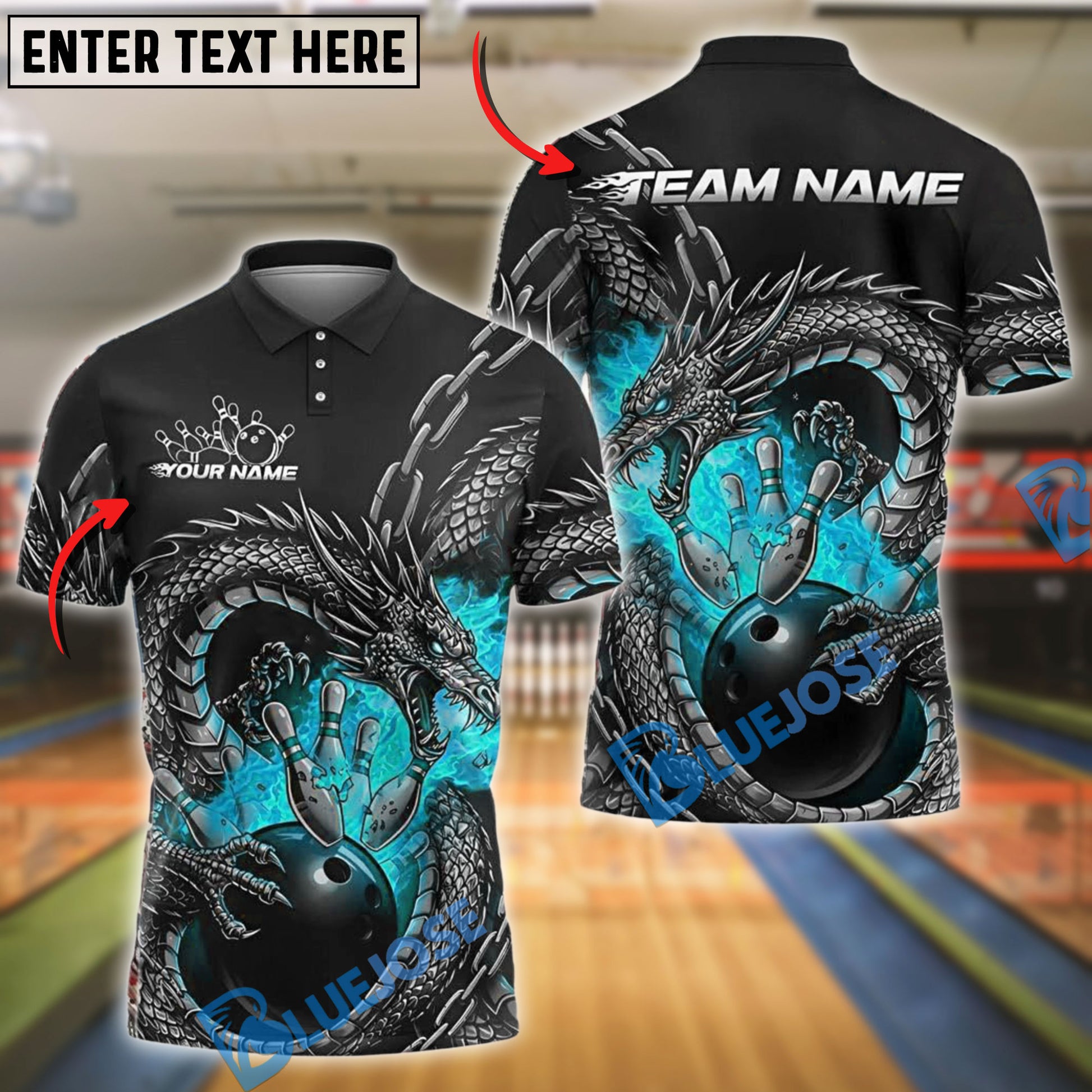 BlueJose Bowling Dragon Fire Customized Name, Team Name 3D Shirt (4 Colors)