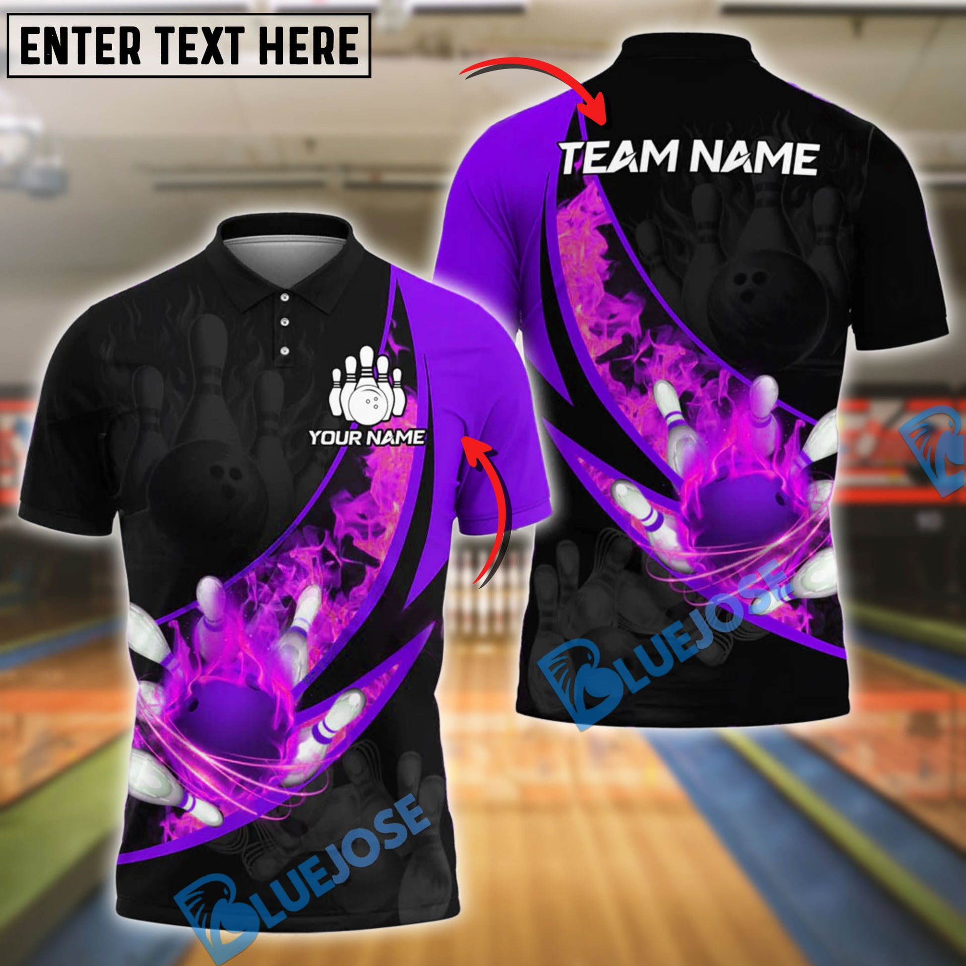 BlueJose Bowling Fire Flaming Strike Explosion Design Customized Name, Team Name 3D Shirt (4 Colors)