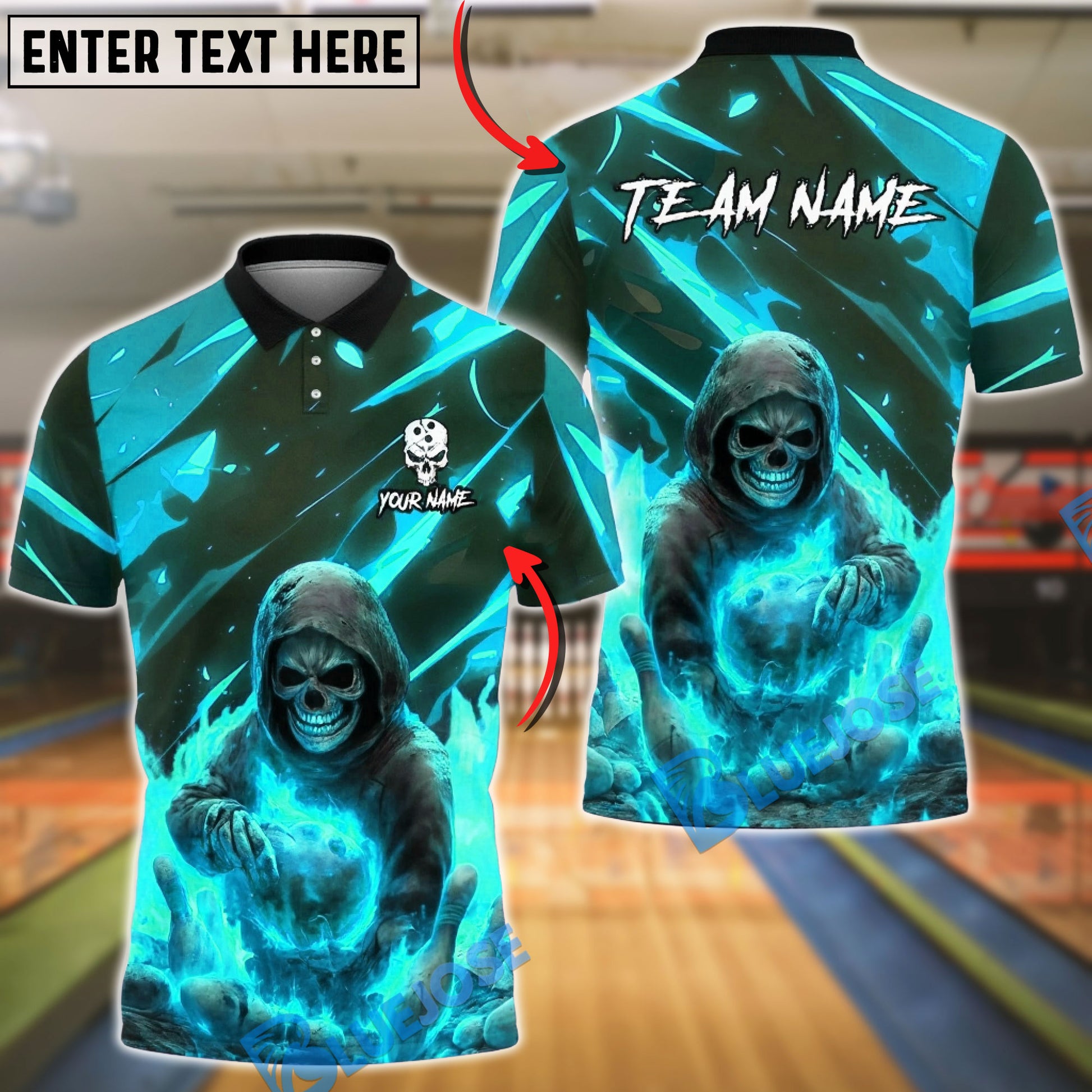 BlueJose Bowling Fire Reaper Skull Flame Customized Name, Team Name 3D Shirt (4 Colors)