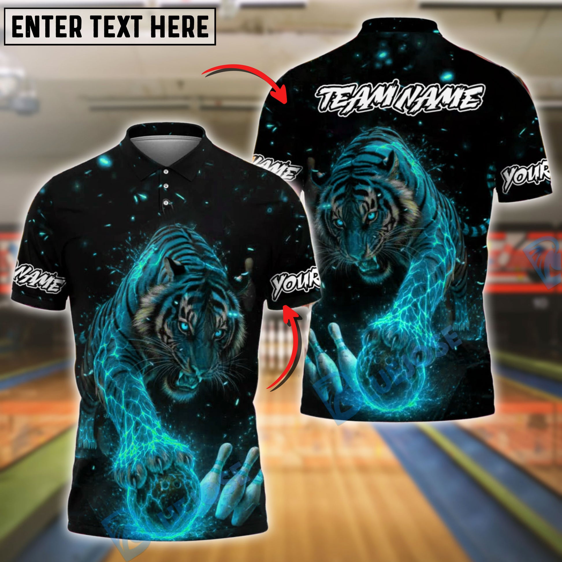 BlueJose Bowling Fire Tiger Customized Name, Team Name 3D Shirt (4 Colors)