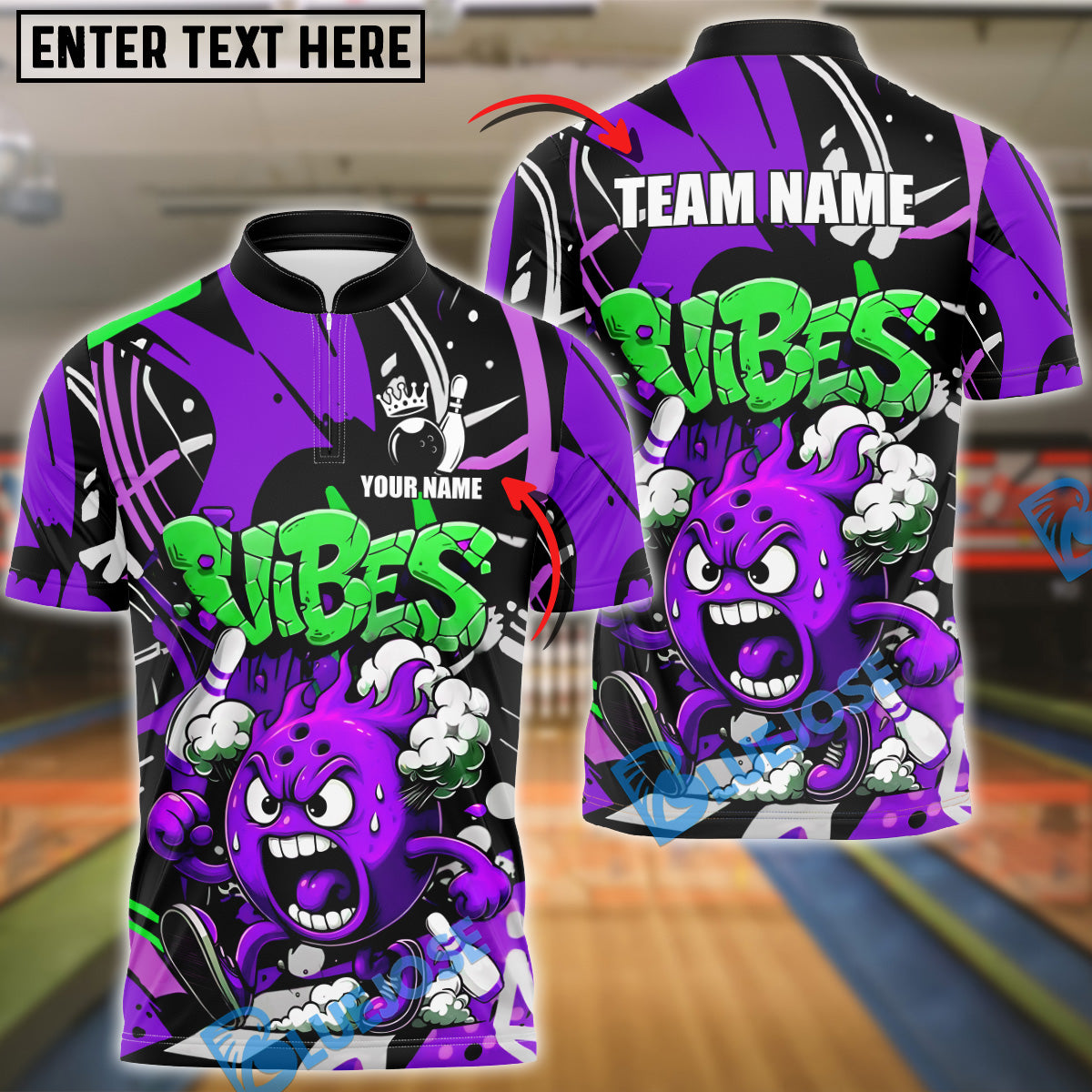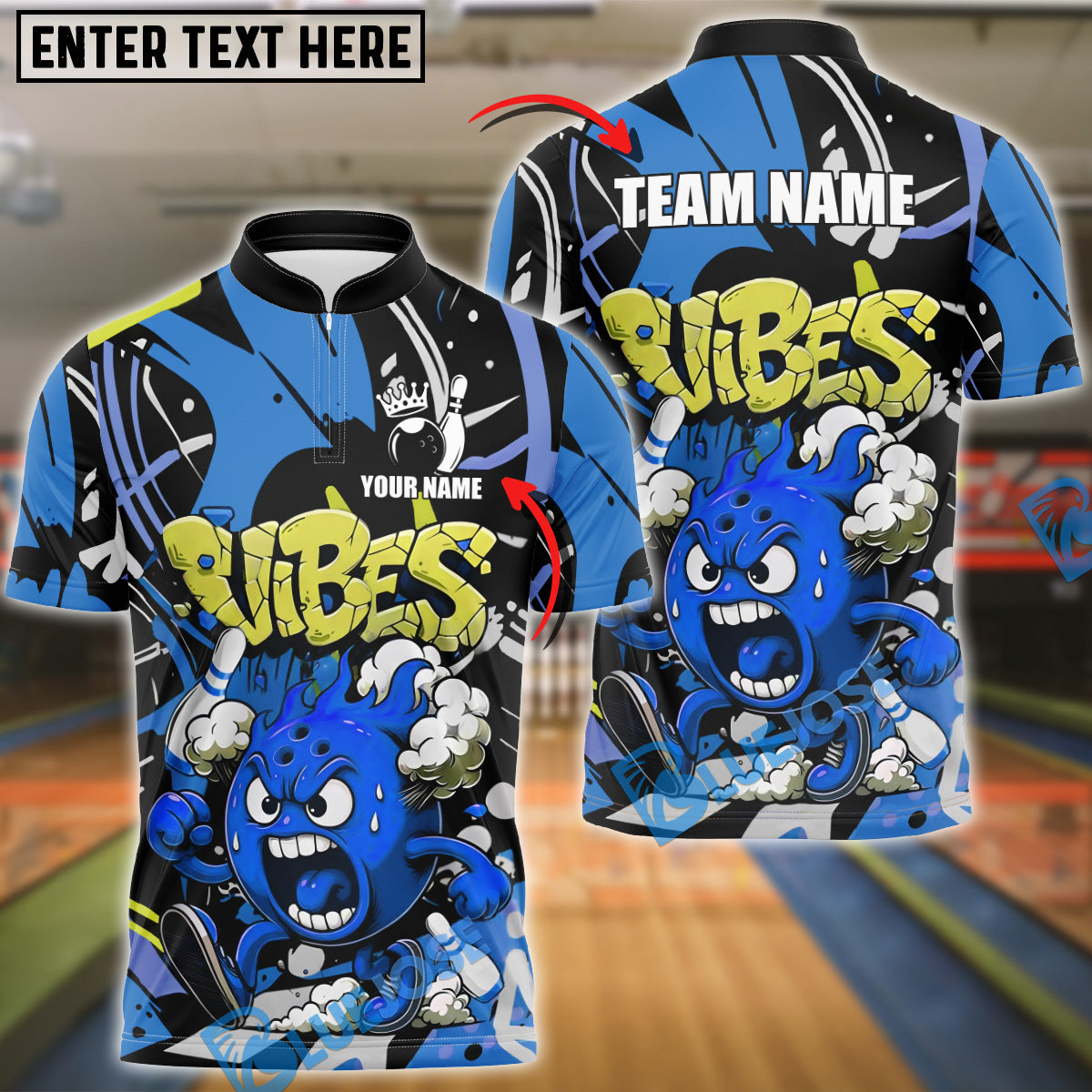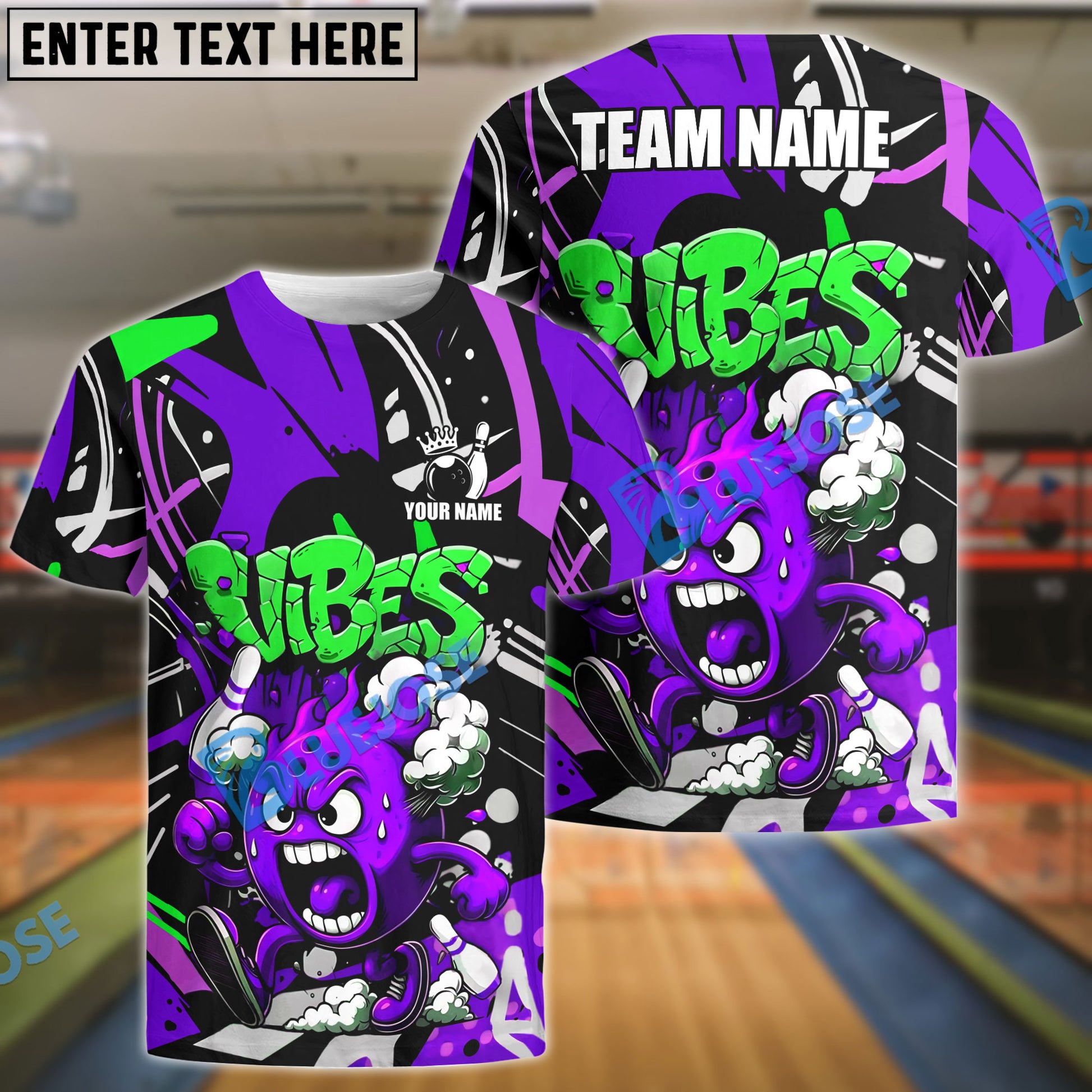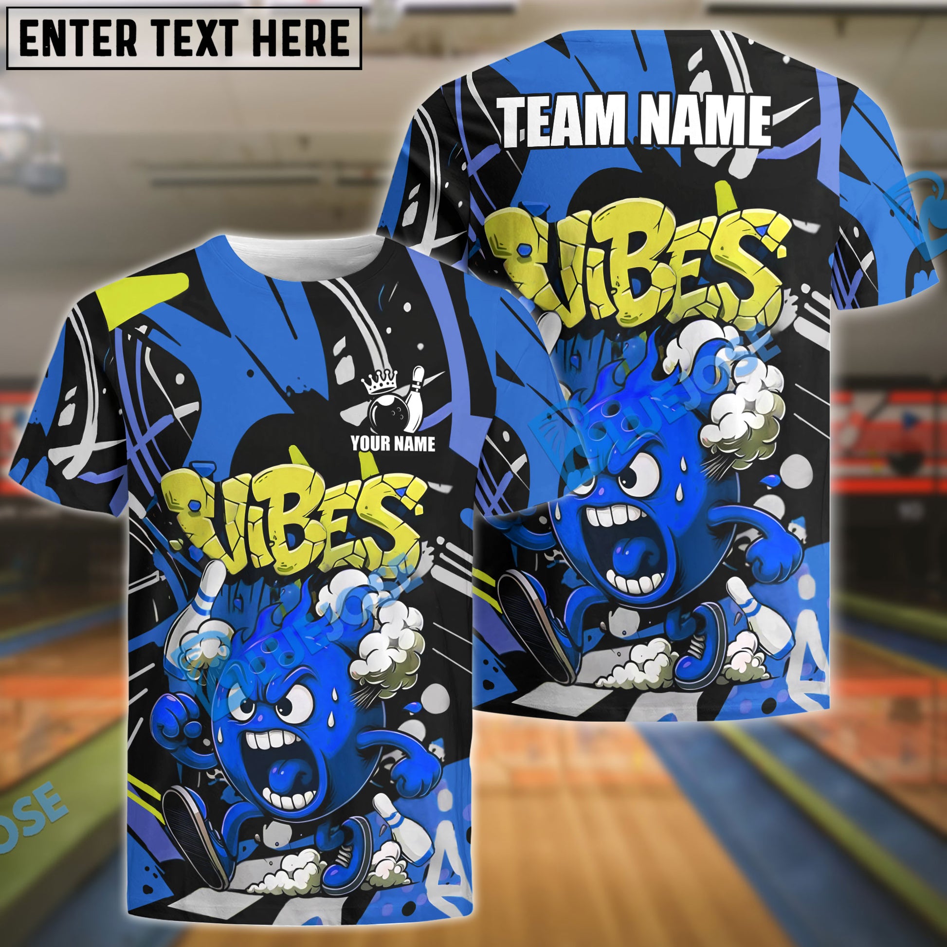 BlueJose Bowling Fireball Graffiti Style Customized Name, Team Name 3D Shirt (4 Colors)
