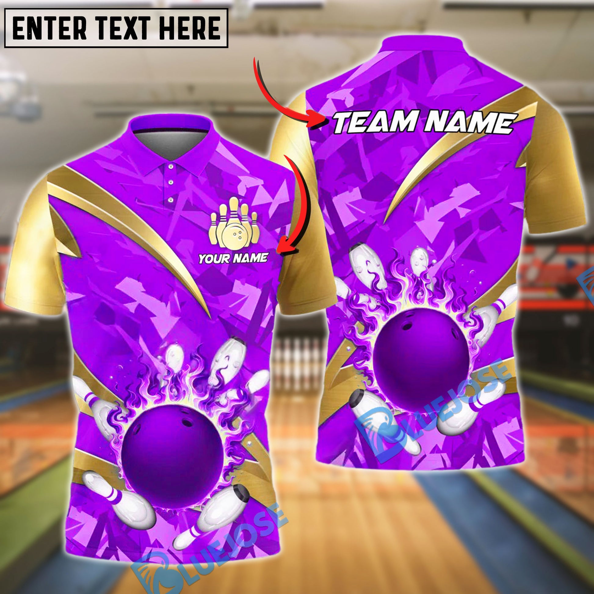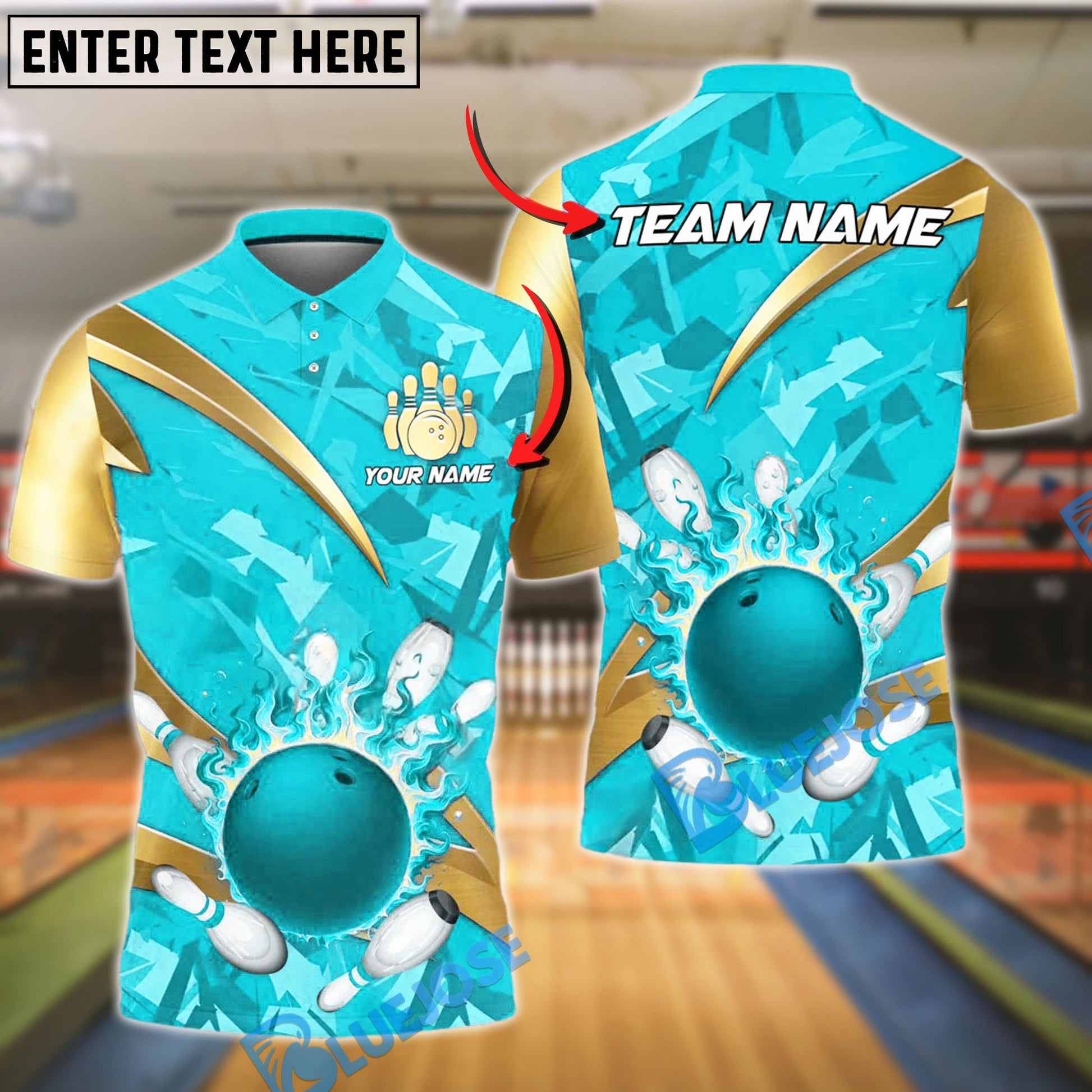 BlueJose Bowling Flaming Ball & Pins Design Customized Name, Team Name 3D Shirt (4 Colors)