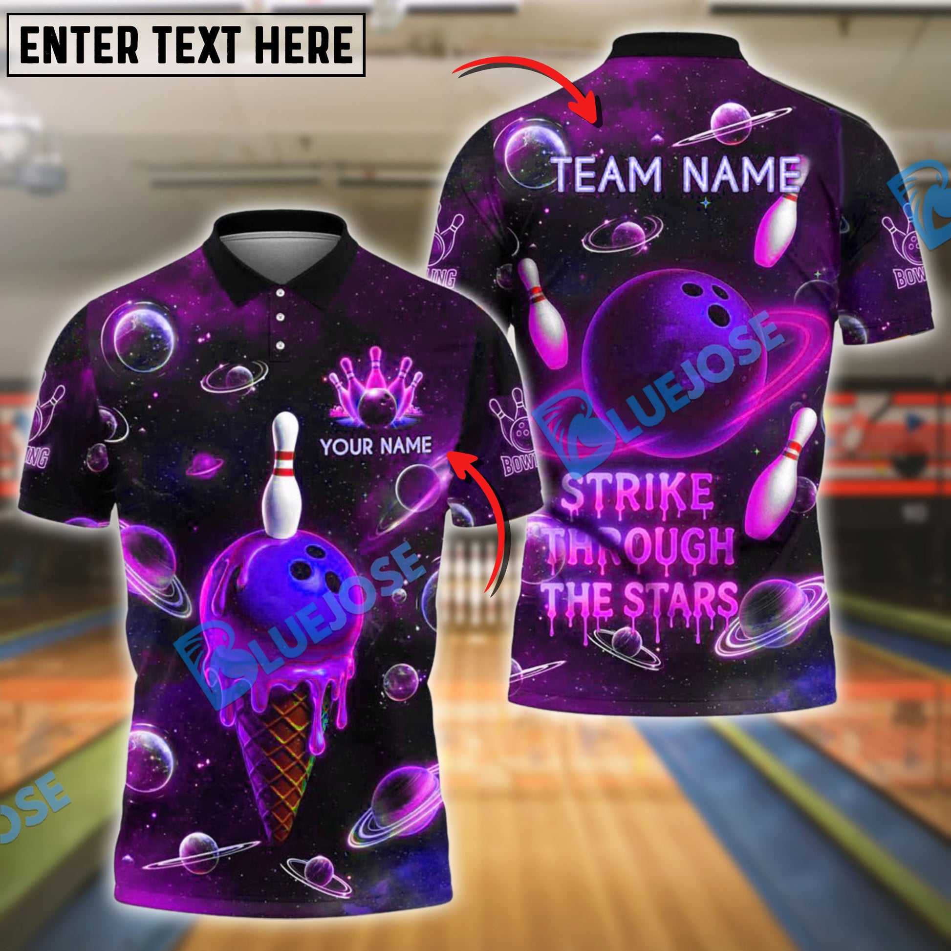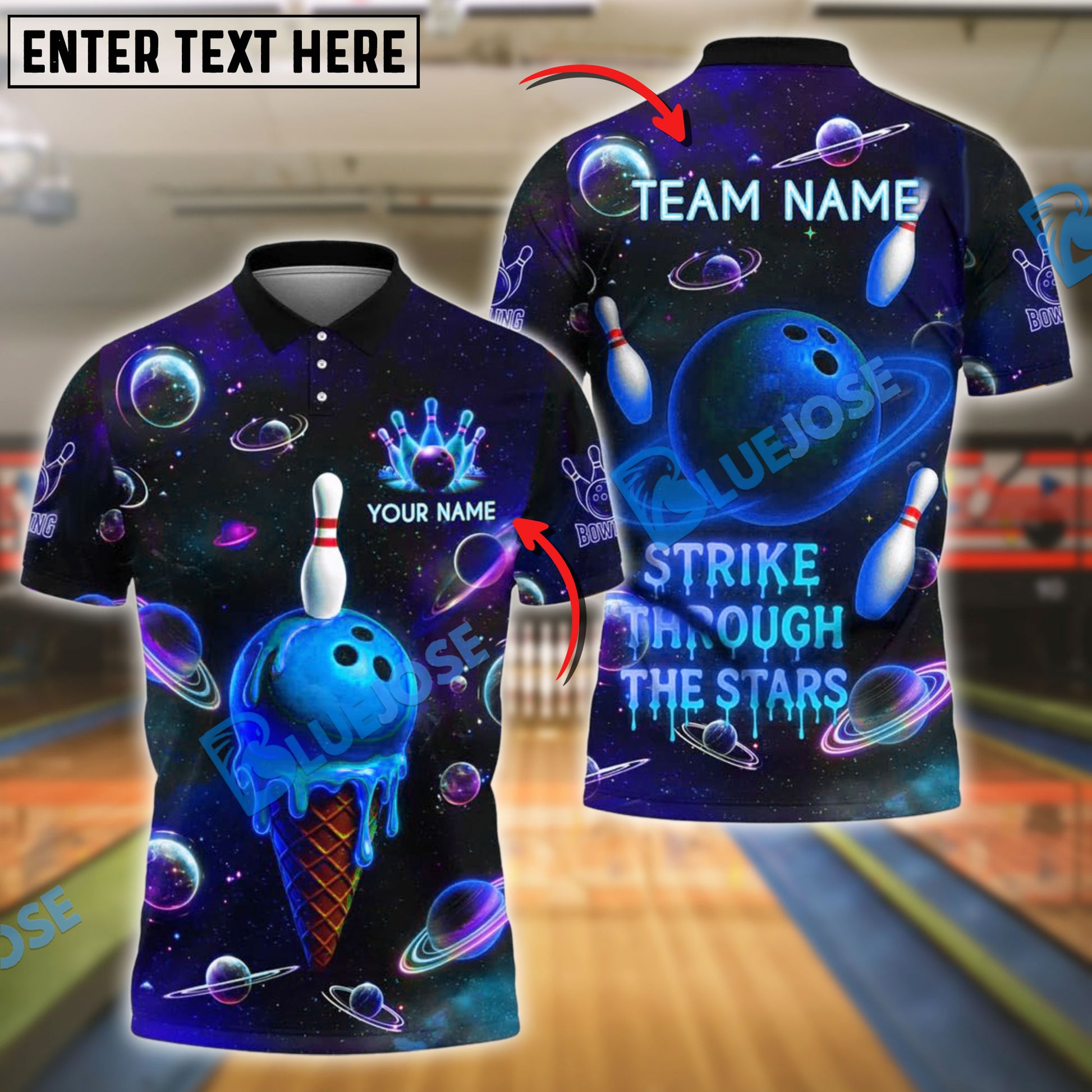 BlueJose Bowling Galactic Ice Cream Strike Customized Name, Team Name 3D Shirt (4 Colors)