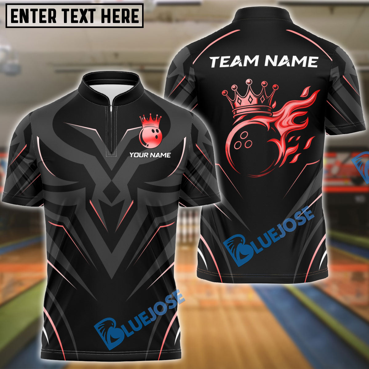 BlueJose Bowling Golden Royal Flame Customized Name, Team Name 3D Shirt (4 Colors)