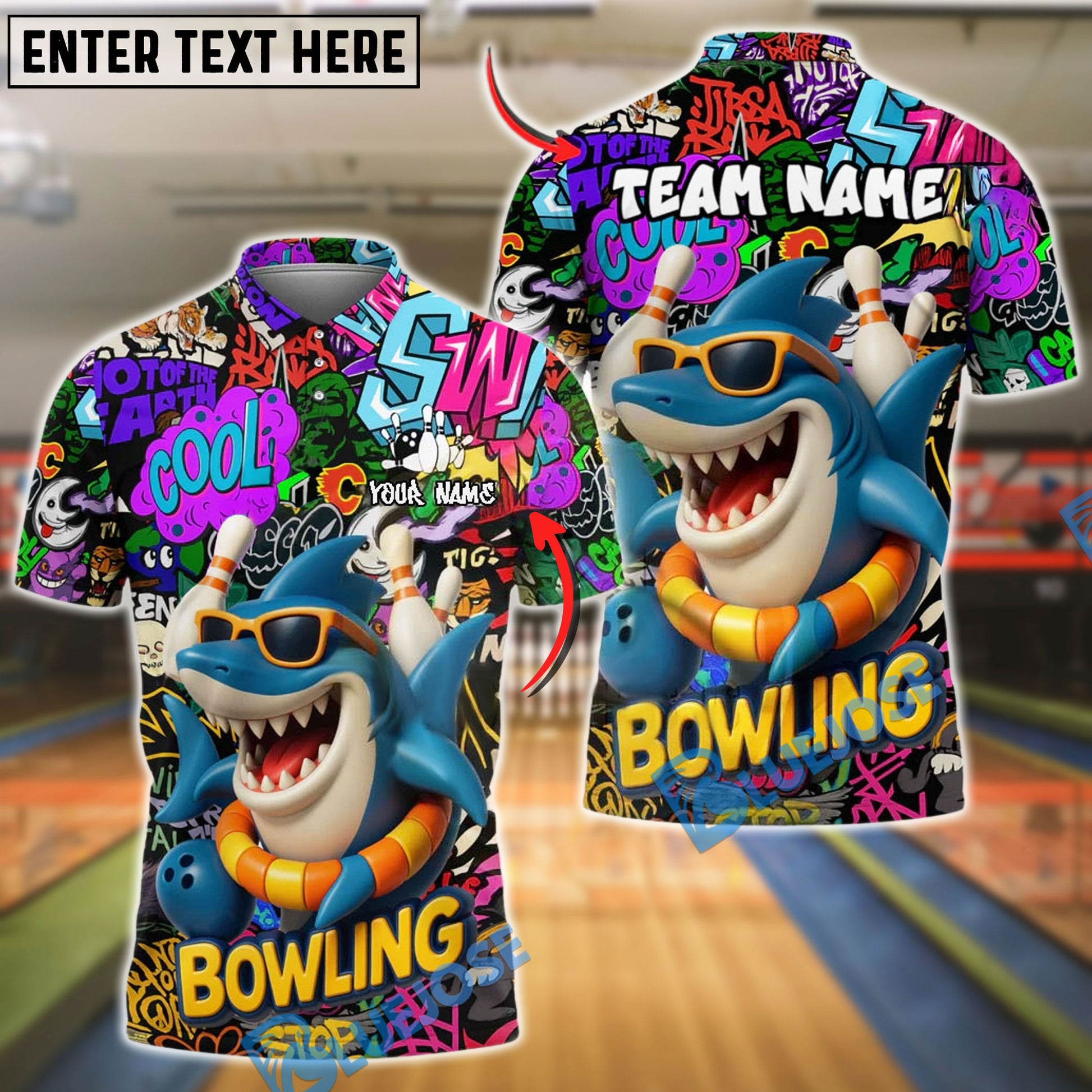 BlueJose Bowling Graffiti Shark Personalized Name, Team Name 3D Shirt