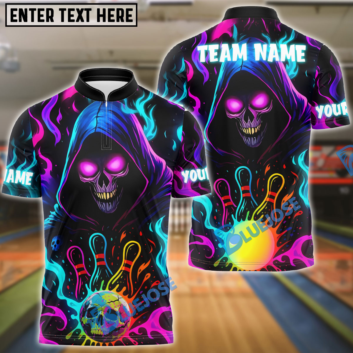 BlueJose Bowling Grim Reaper Neon Flame Ver 2 Personalized Name, Team Name 3D Shirt