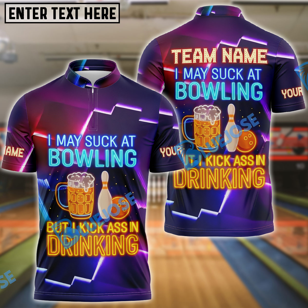 BlueJose Bowling I May Suck At Bowl And Beer Neon Style Personalized Name, Team Name 3D Shirt