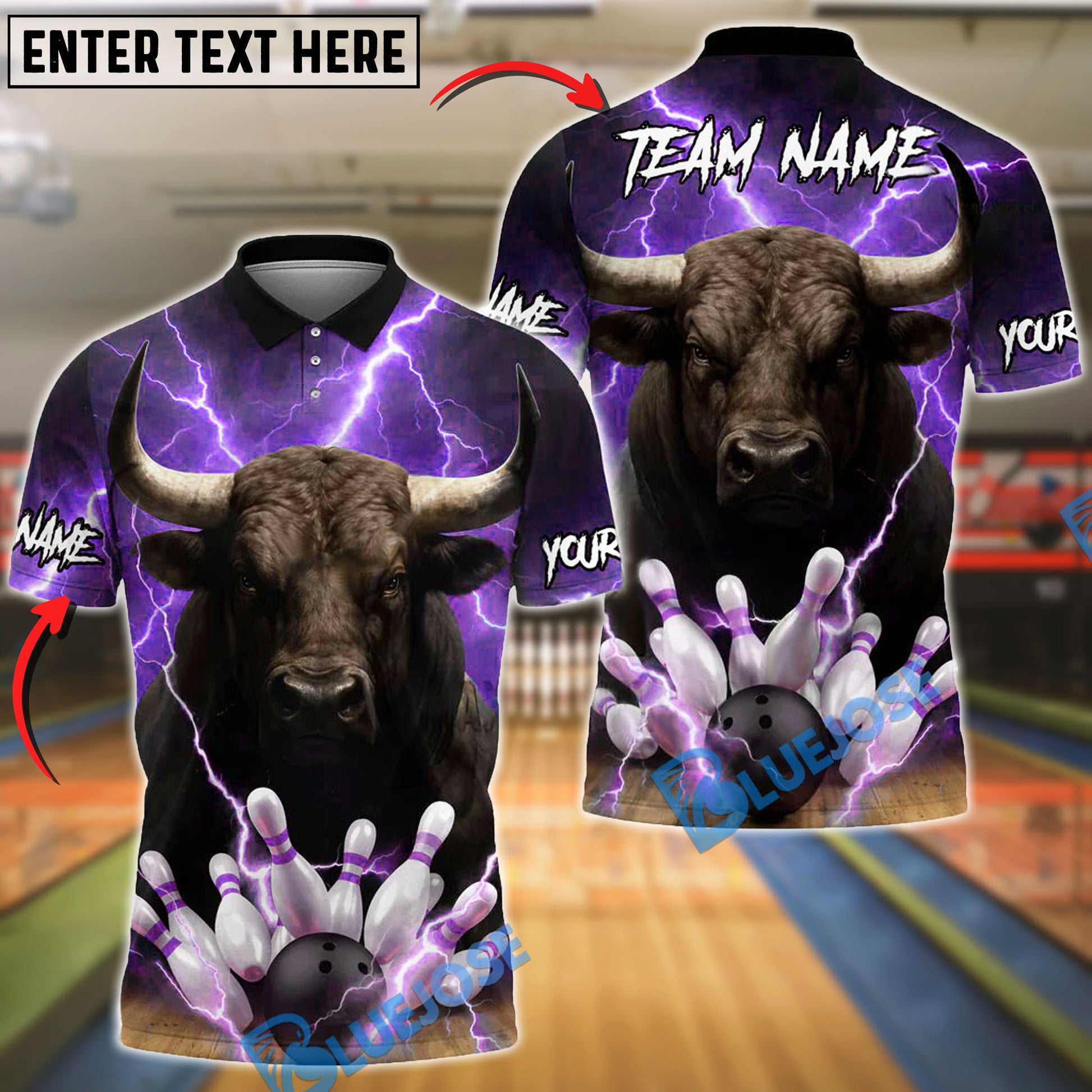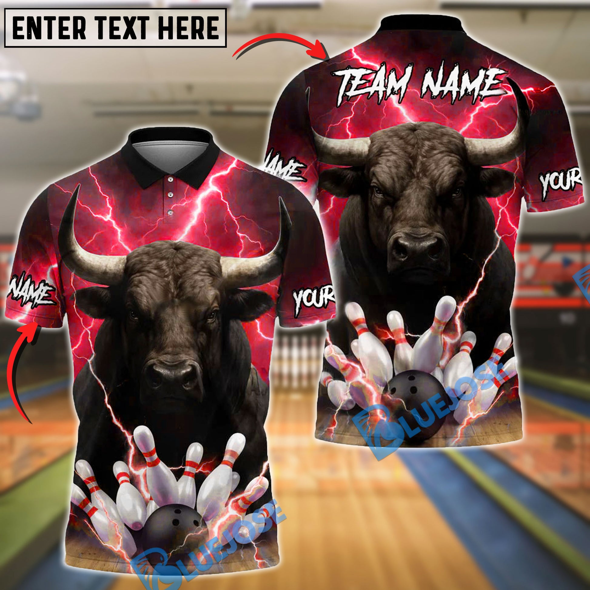 BlueJose Bowling Lightning Bull Customized Name, Team Name 3D Shirt (4 Colors)