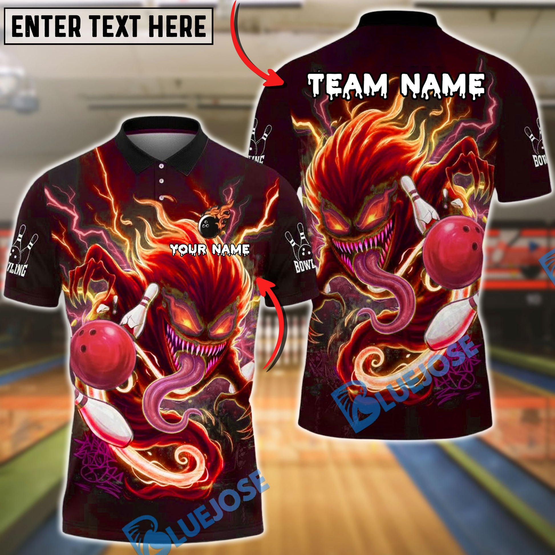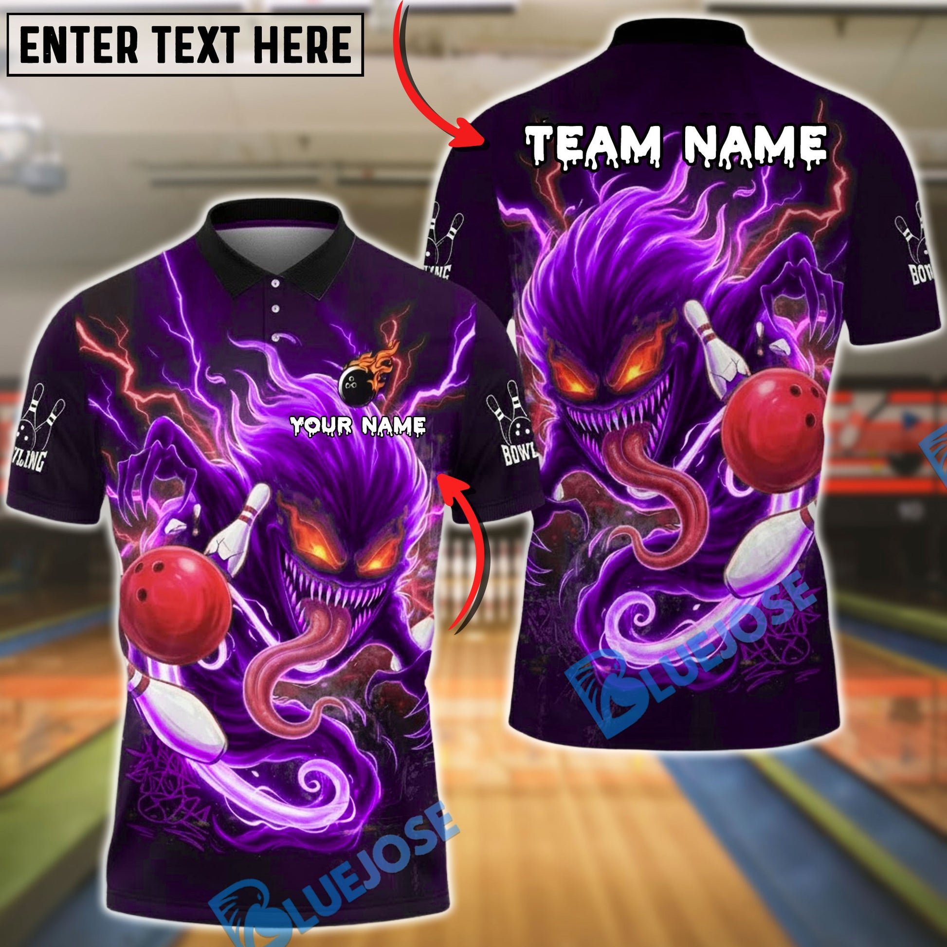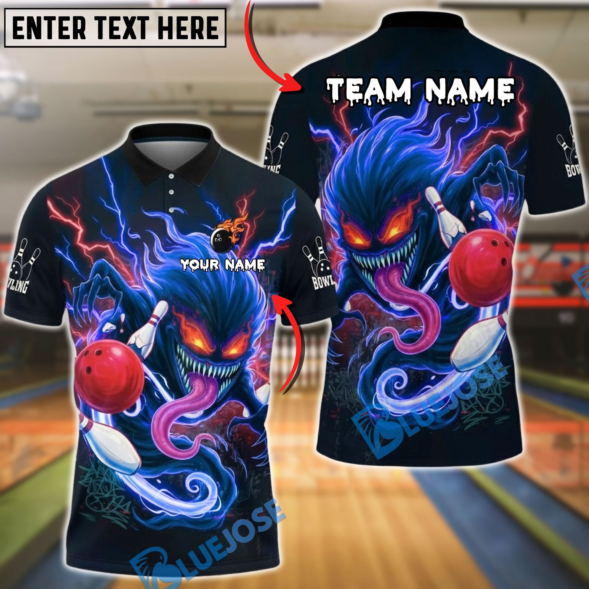 BlueJose Bowling Monster Lightning Strike Customized Name, Team Name 3D Shirt (4 Colors)