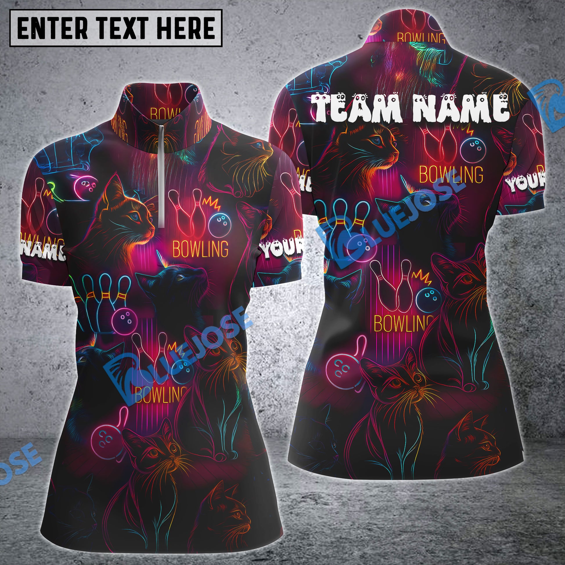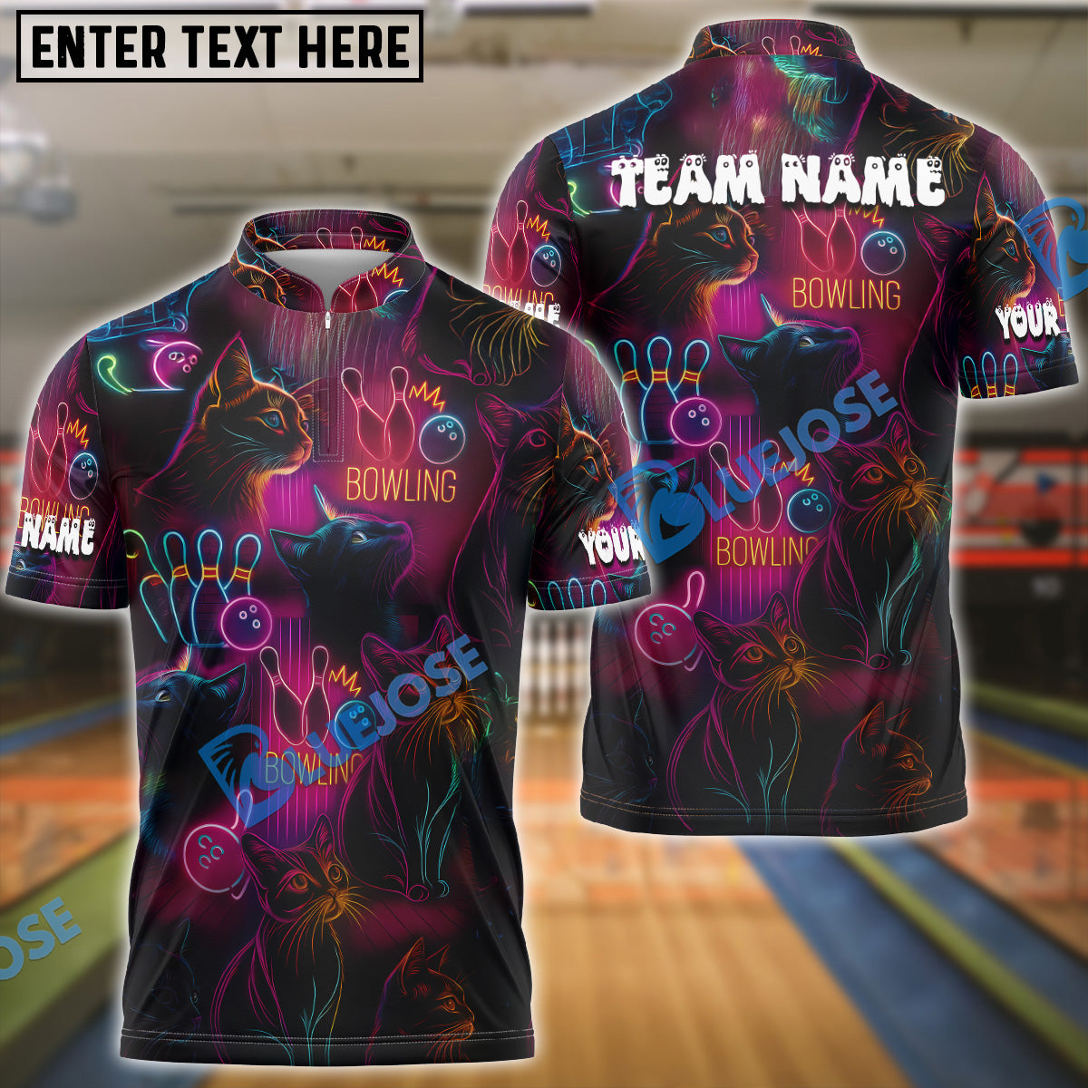 BlueJose Bowling Neon Cat Customized Name, Team Name 3D Shirt