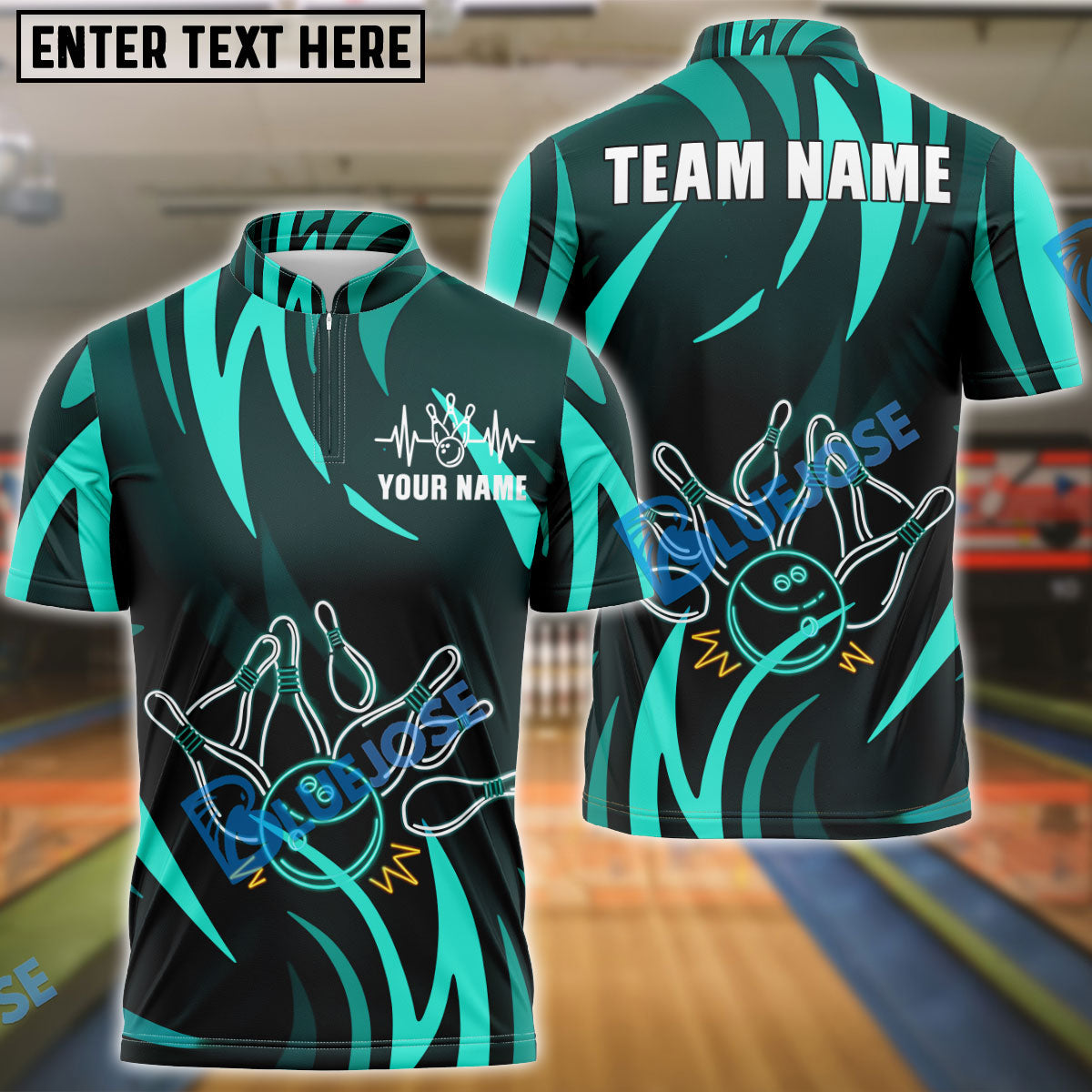 BlueJose Bowling Neon Explosion Customized Name, Team Name 3D Shirt (4 Colors)