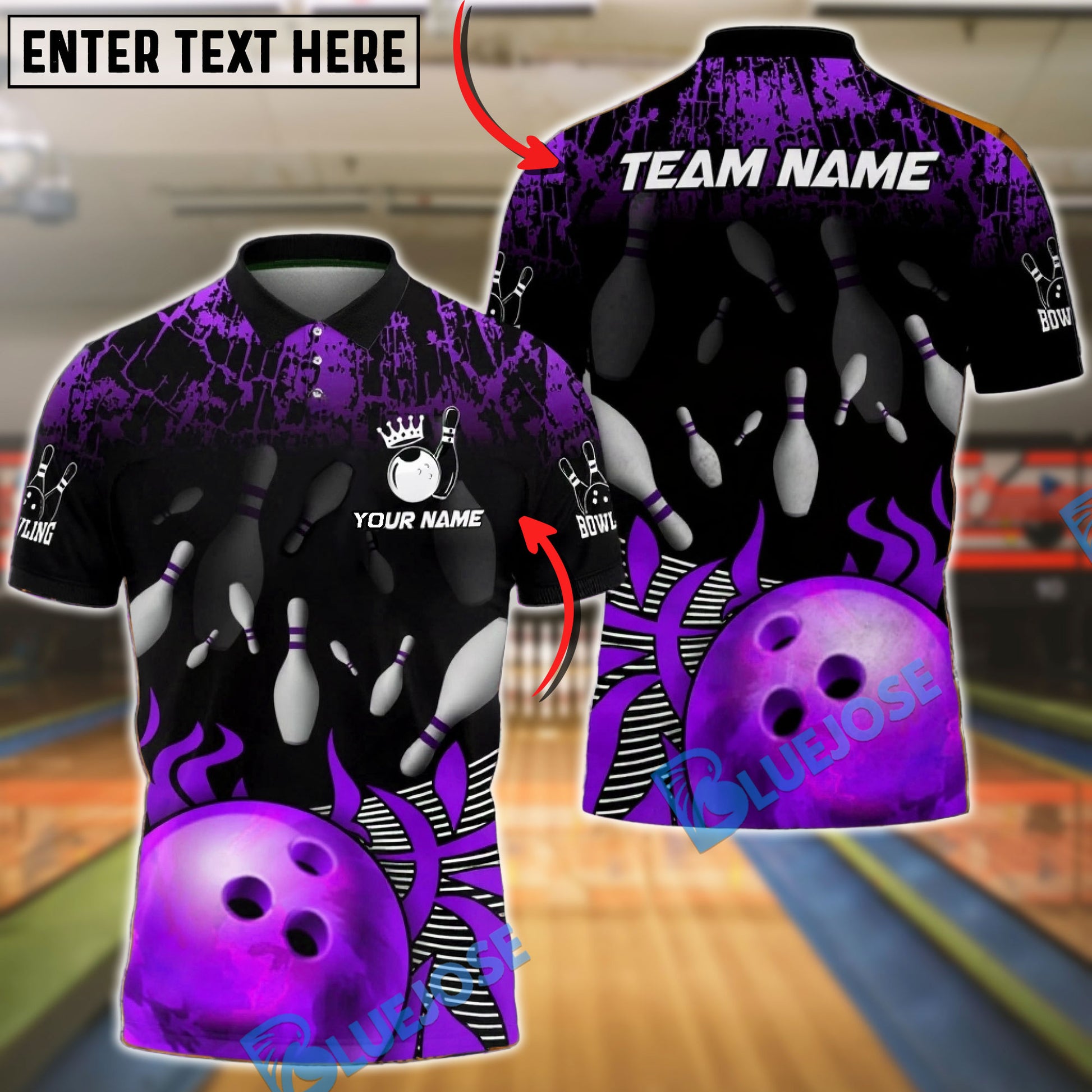 BlueJose Bowling & Pin Fire Strike Flame Pins Customized Name, Team Name 3D Shirt (4 Colors)