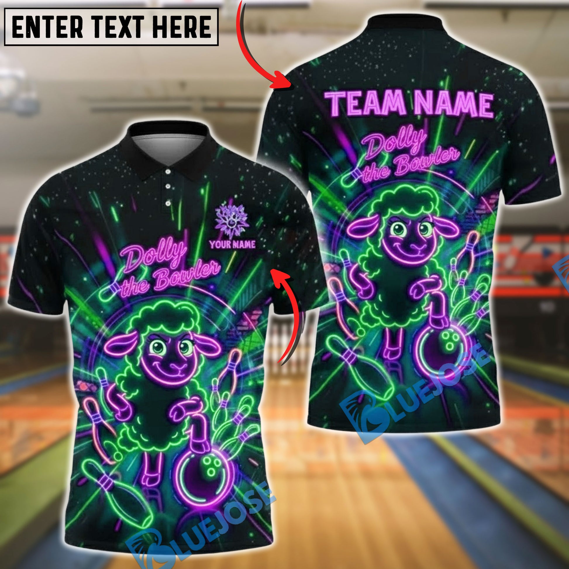 BlueJose Bowling & Pin Neon Dolly the Bowler Sheep Customized Name, Team Name 3D Shirt (4 Colors)