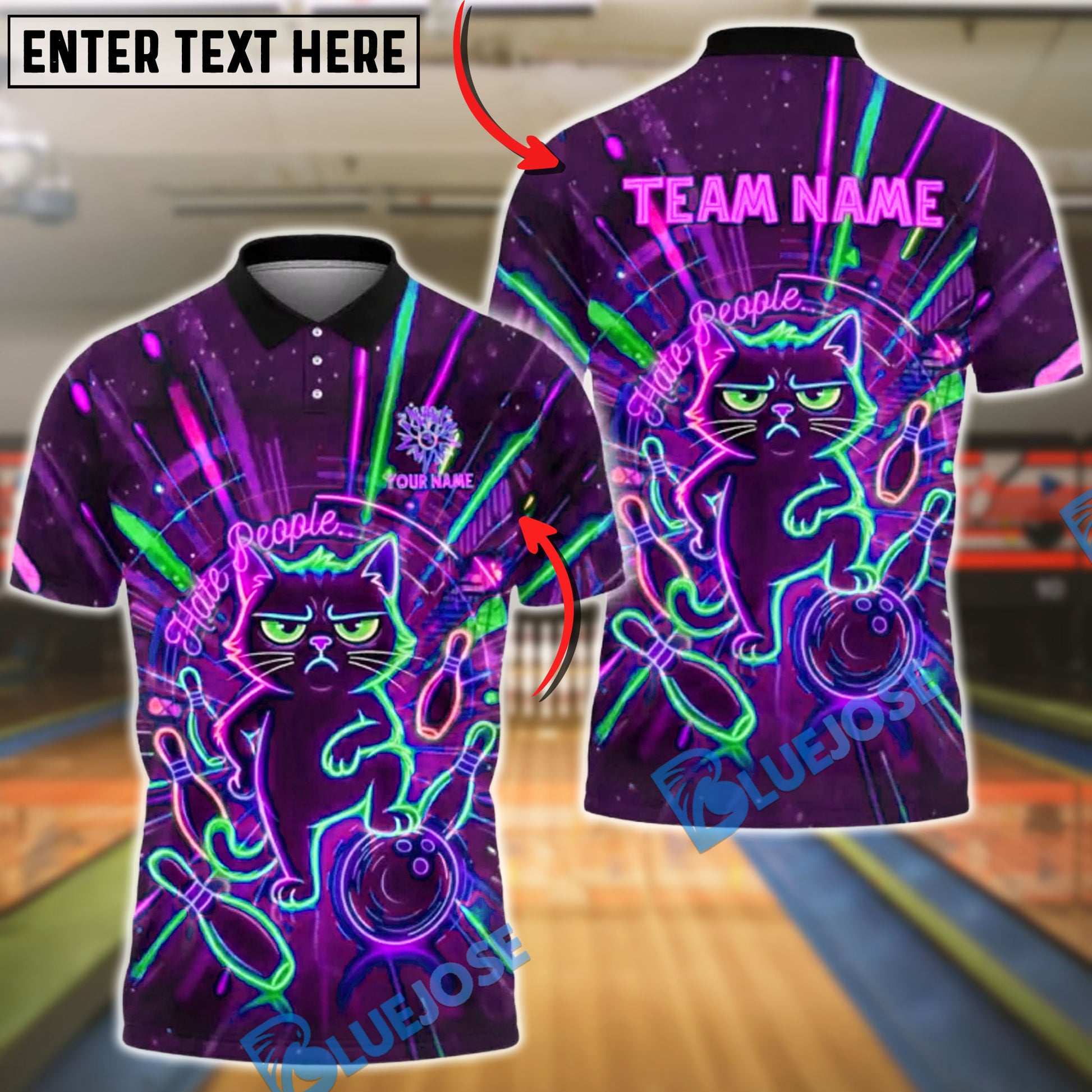 BlueJose Bowling & Pin Neon Grumpy Cat Hate People Art Customized Name, Team Name 3D Shirt (4 Colors)