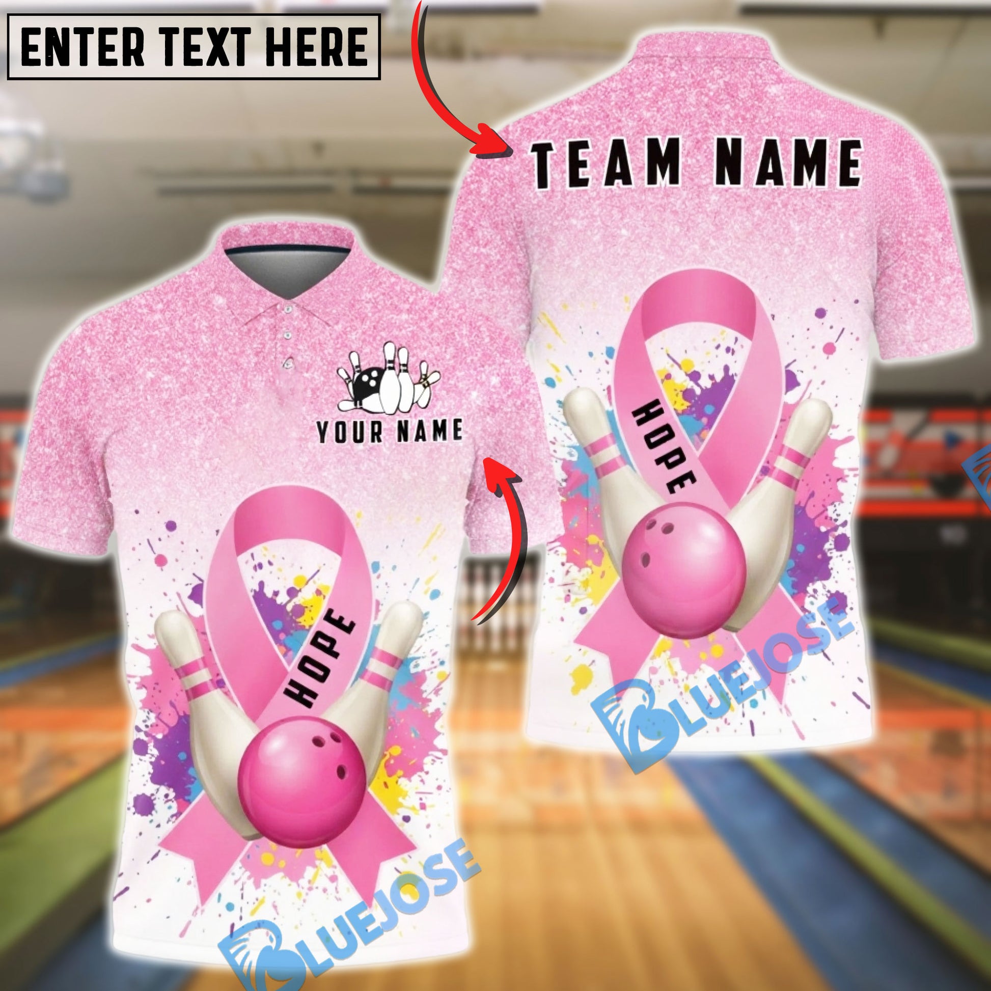 BlueJose Bowling Pink Ribbon Hope Colorful Breast Cancer Personalized Name, Team Name 3D Shirt