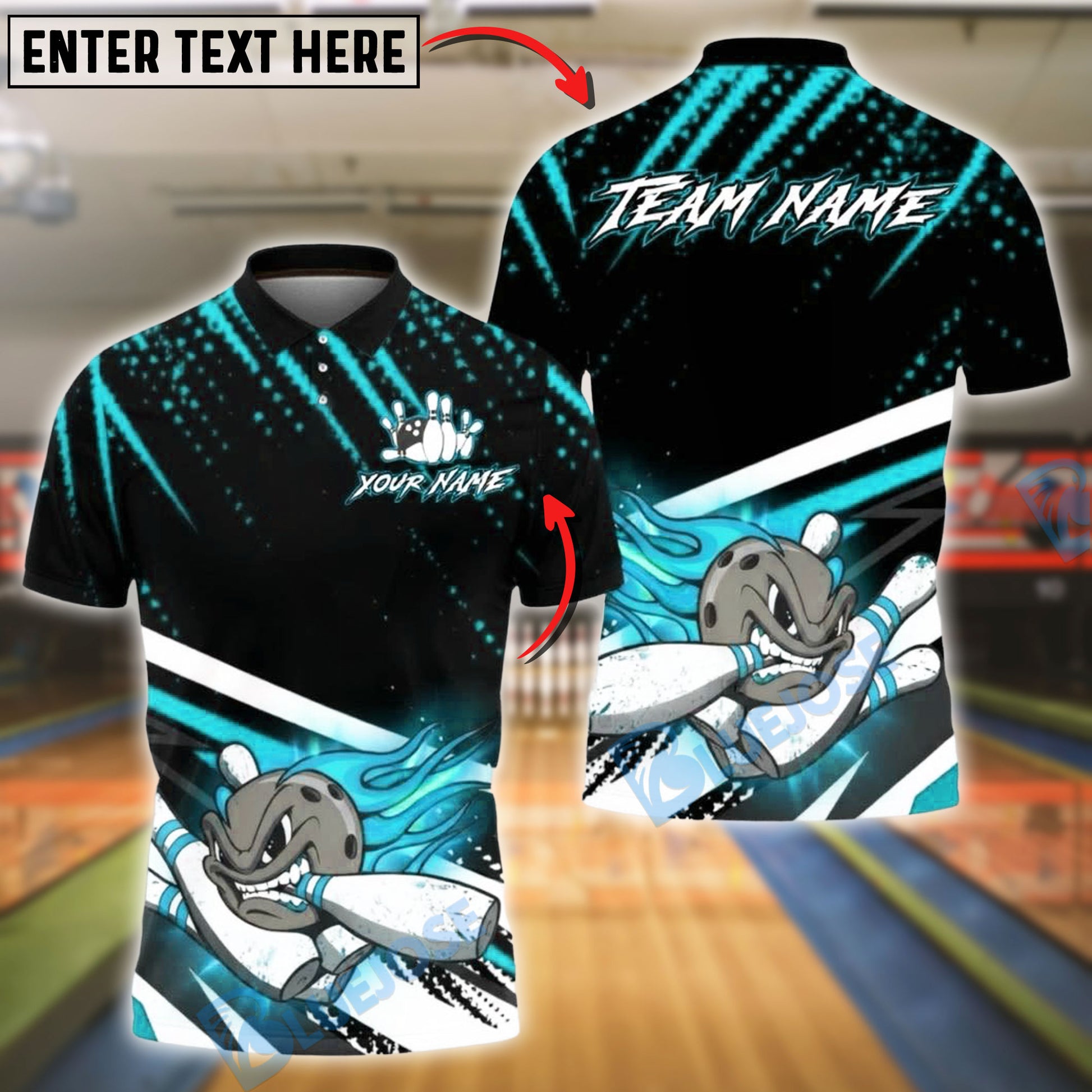 BlueJose Bowling & Pins Black Abstract Design Customized Name, Team Name 3D Shirt (4 Colors)