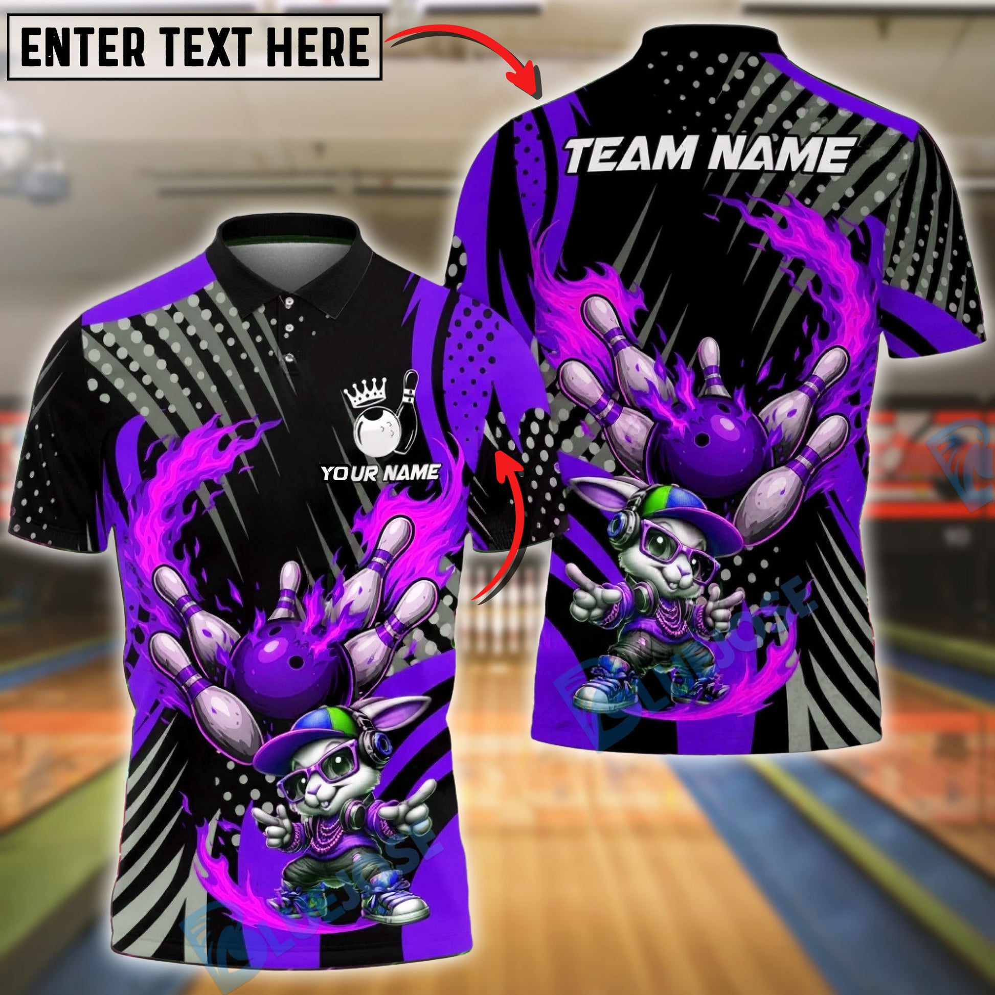 BlueJose Bowling & Pins Bunny Mascot Fire Strike Customized Name, Team Name 3D Shirt (4 Colors)