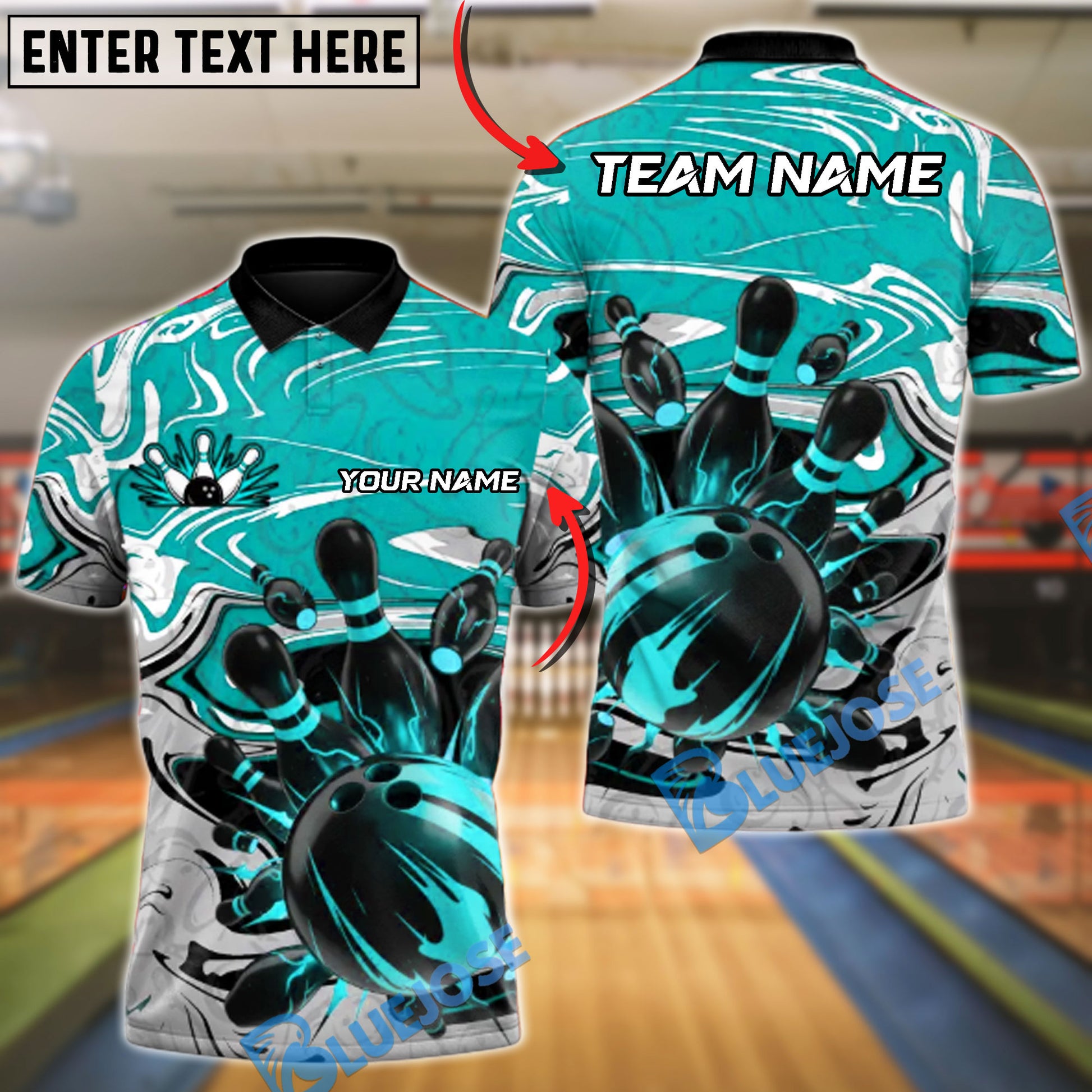 BlueJose Bowling & Pins Crimson Chaos Strike Customized Name, Team Name 3D Shirt (4 Colors)